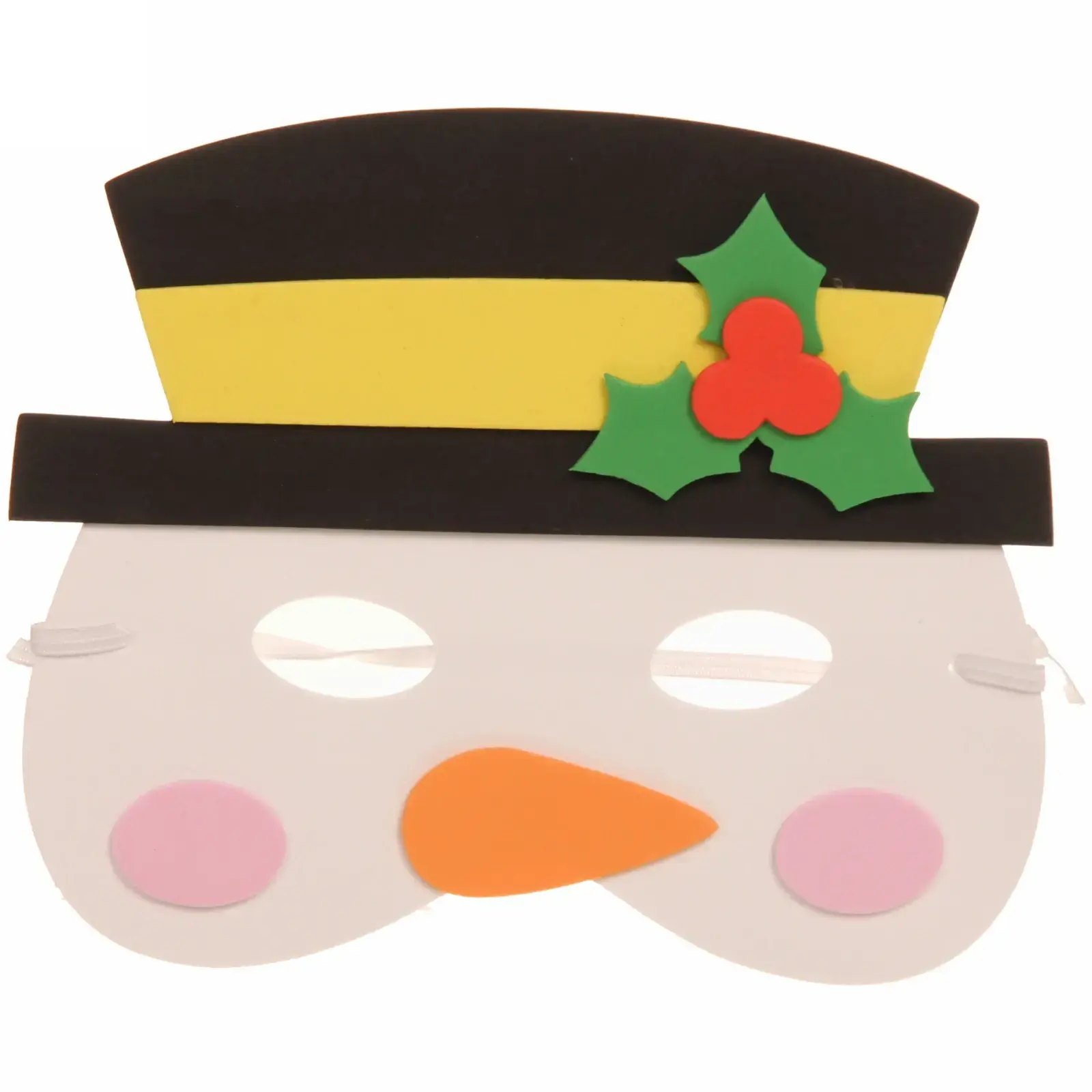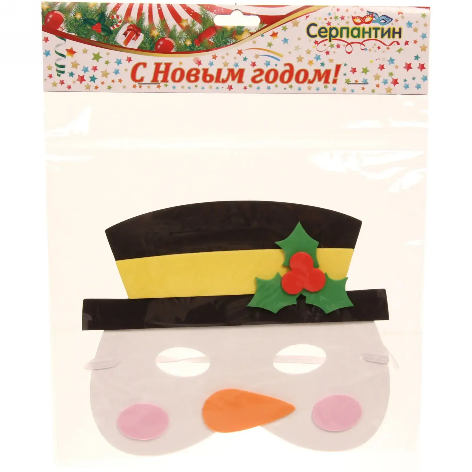 Выбирая нашу маску снеговика, вы получаете не только стильный аксессуар, но и возможность создать яркий образ, который запомнится всем вашим друзьям и близким. Маска выполнена в традиционных новогодних цветах: белый фон, черная шляпа с желтой полоской, оранжевый нос и розовые щечки, что делает её привлекательной и веселой. Она станет отличным выбором для фотосессий и создания праздничного настроения.