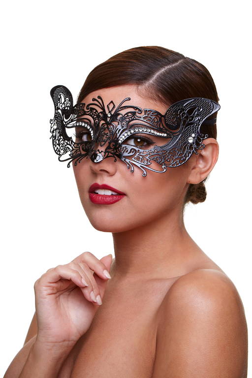 Маска декоративная со стразами "Courtesan", черная, металл, для эротического образа