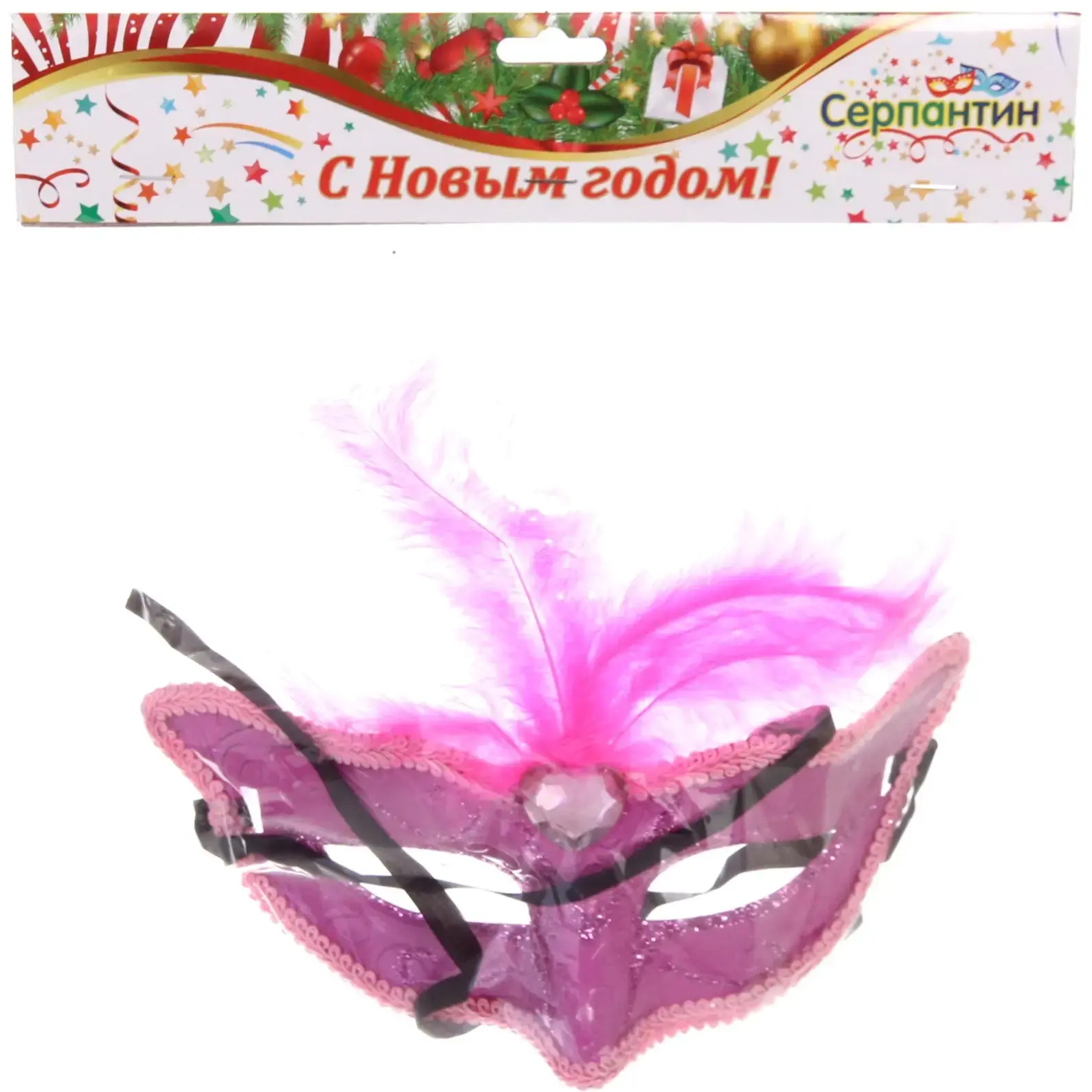 Маска «Тайна» имеет фиолетовый цвет с блестящей поверхностью и украшена розовыми перьями, которые придают ей особый шарм. В центре маски расположен блестящий элемент в форме сердца, что добавляет ей романтичности. Декор по краям выполнен в виде кружев и витков, что делает ее еще более привлекательной. Размер маски не указан, но она подходит для большинства взрослых.