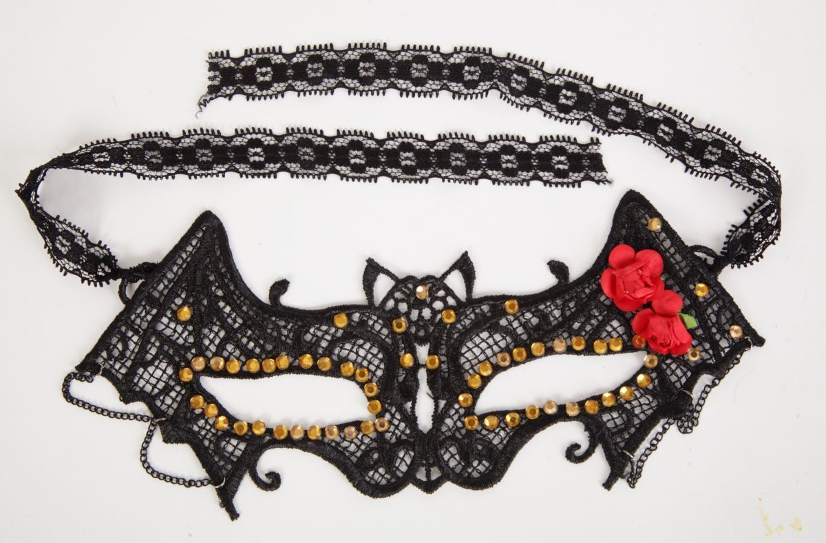 Погрузитесь в мир загадки и соблазна с нашей карнавальной маской в форме летучей мыши. Эта маска не только украсит ваш образ, но и добавит нотку таинственности и игривости в ваши эротические игры. Украшенная множеством страз и яркими красными розочками, она станет идеальным аксессуаром для костюмированных вечеринок и романтических вечеров.