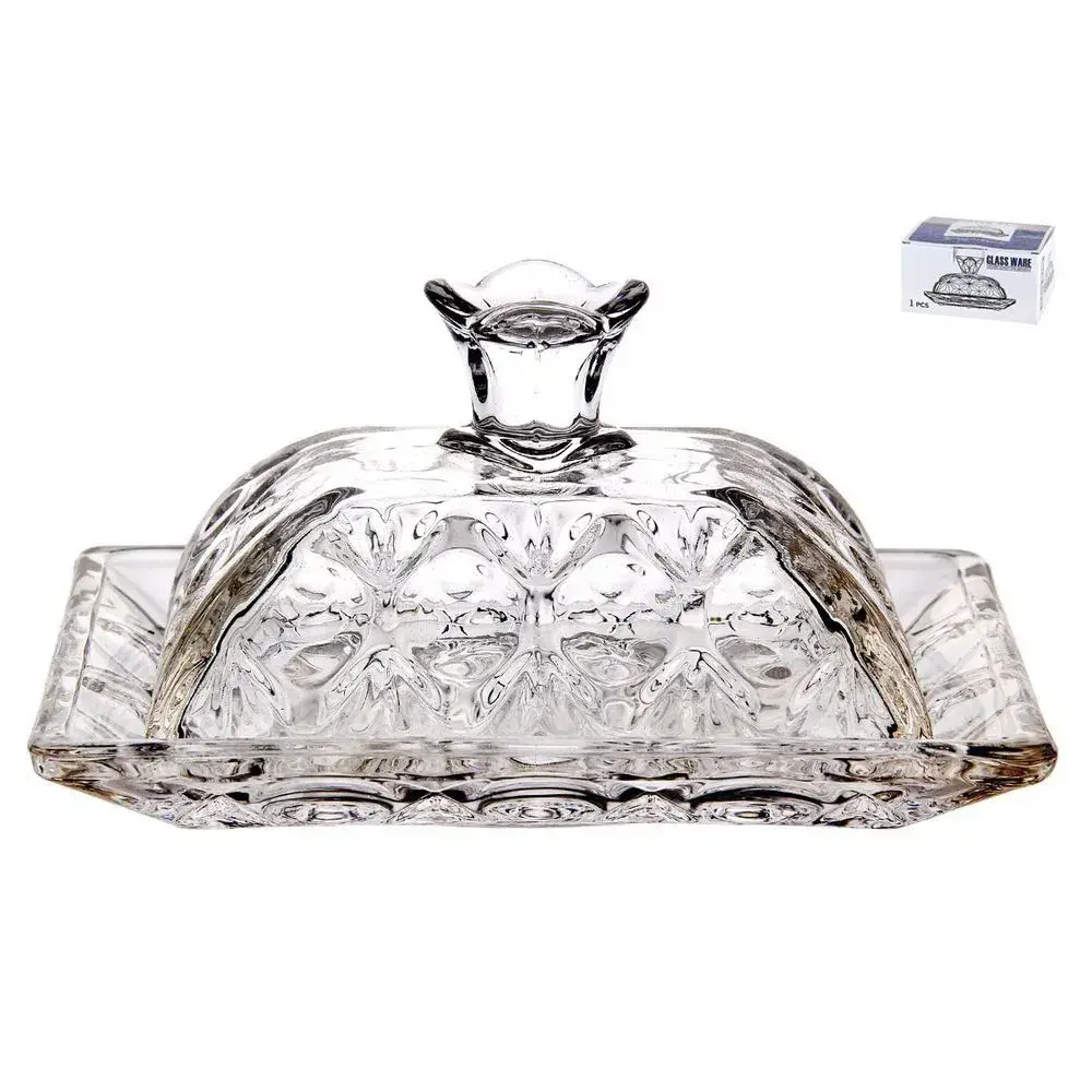 Масленка декоративная со стеклянной крышкой-арбузом, 12х15 см, прозрачная с гравировкой