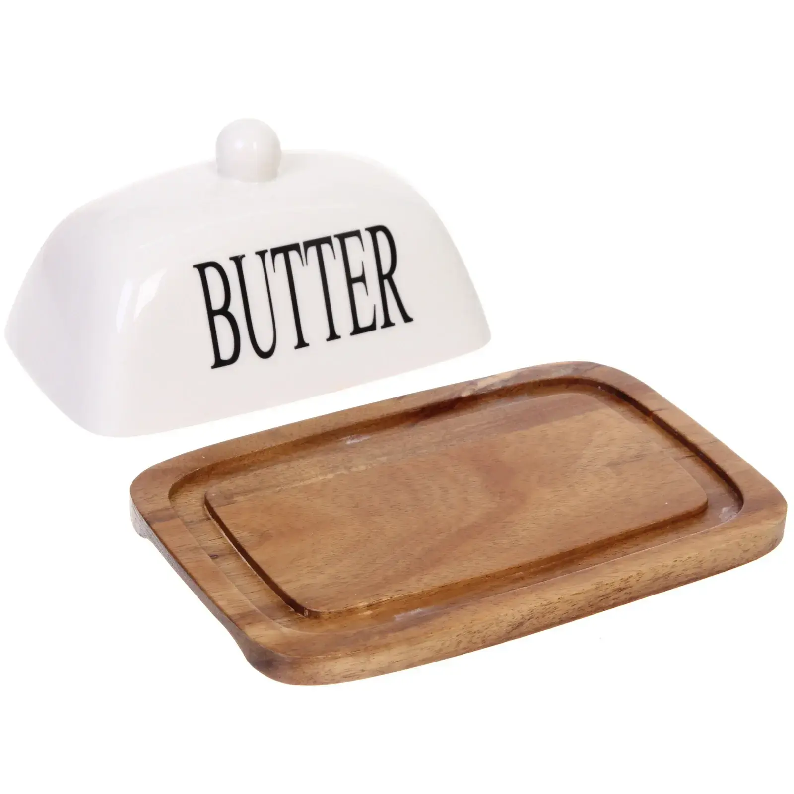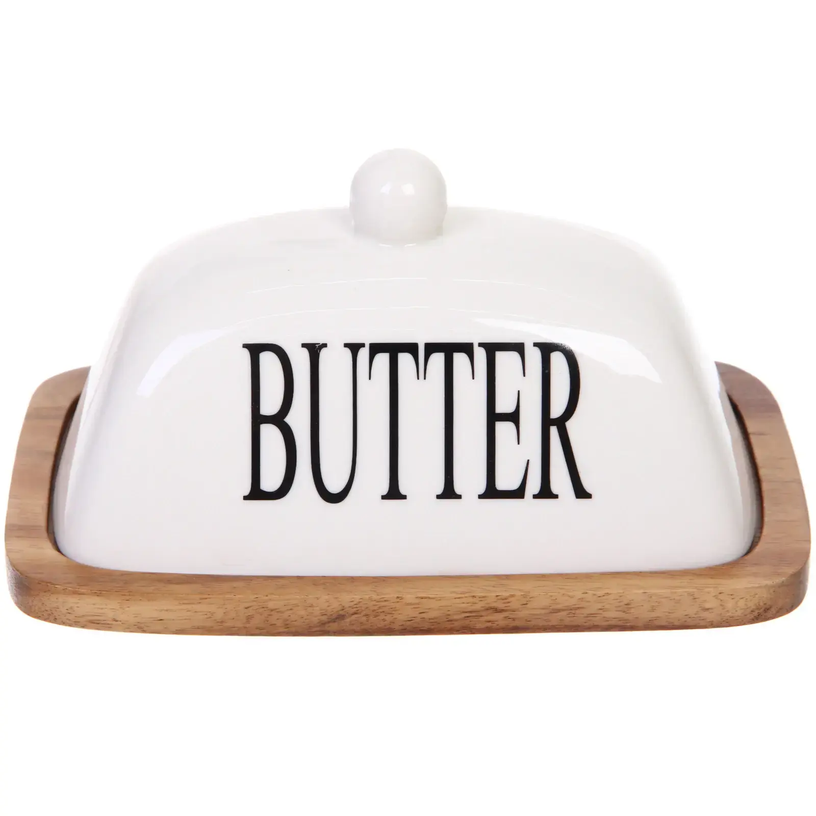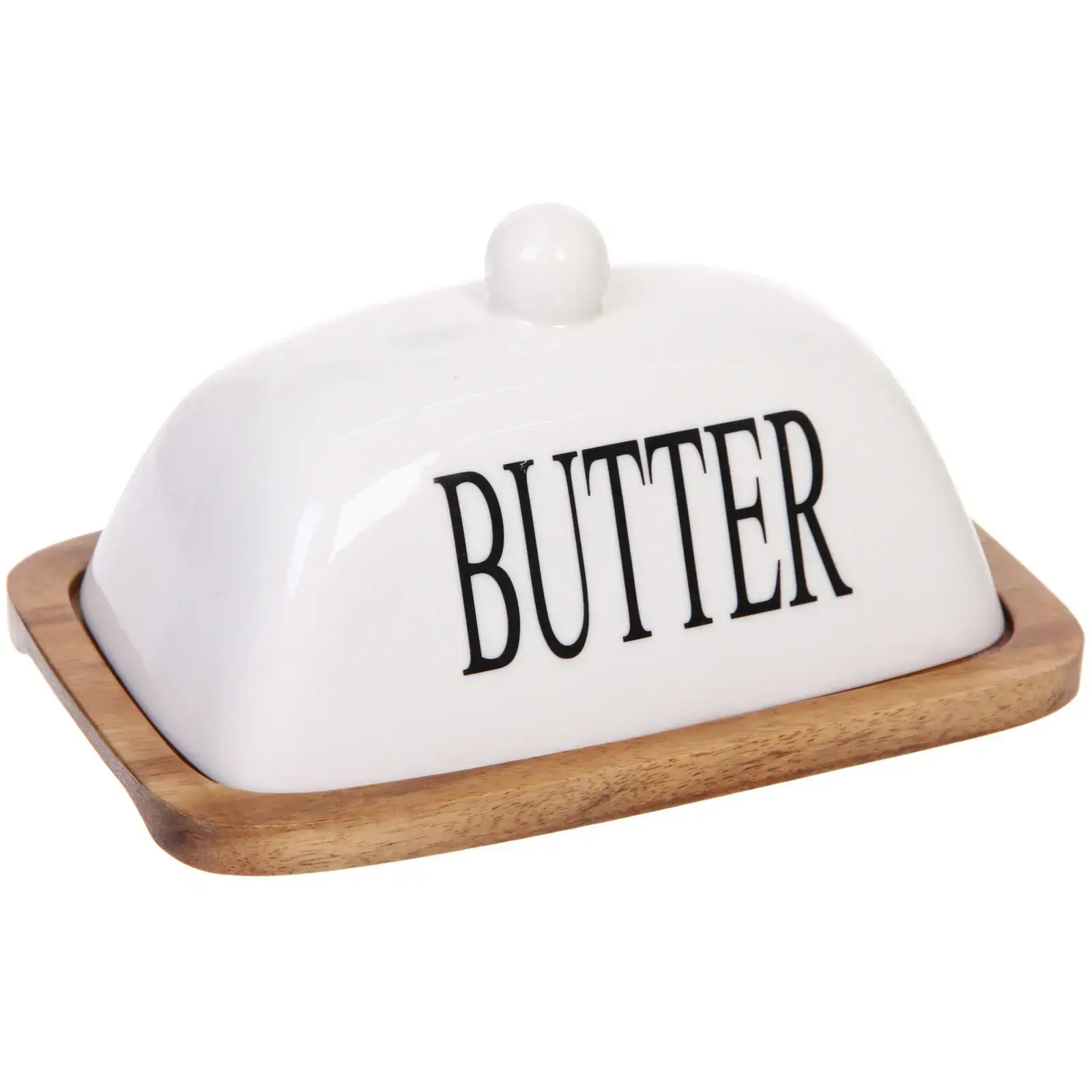 Масленка «White magic» с керамической крышкой, деревянная подставка, 18*11,5*7 см, белая