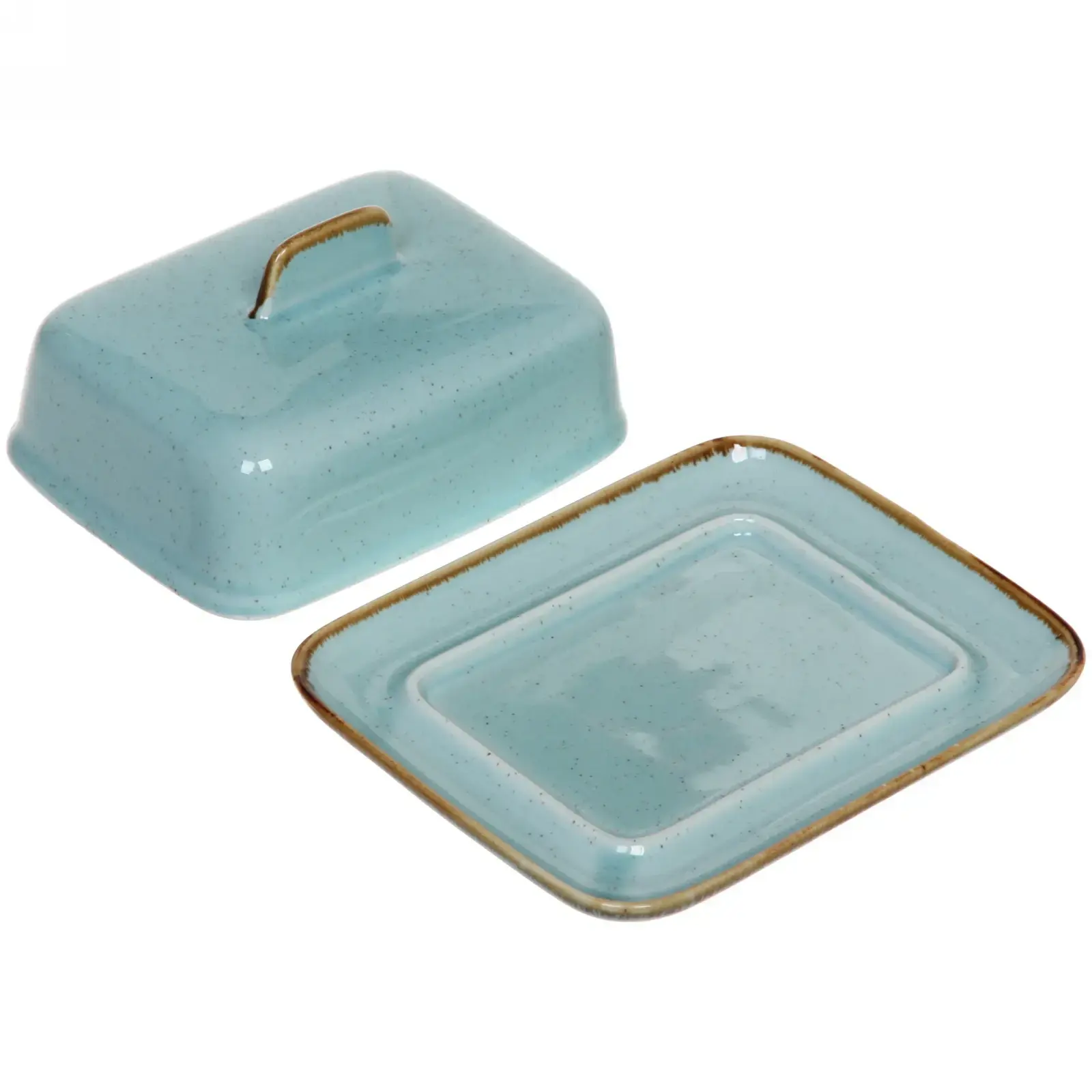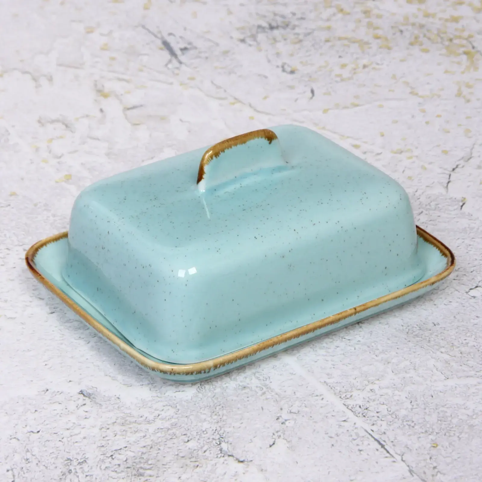 Керамическая масленка «Tiffany Blue» сочетает изысканный дизайн и функциональность. Светло-голубой оттенок с деликатными вкраплениями и золотистыми акцентами добавит нотку утонченности вашему столу, а герметичная крышка сохранит свежесть масел и соусов.