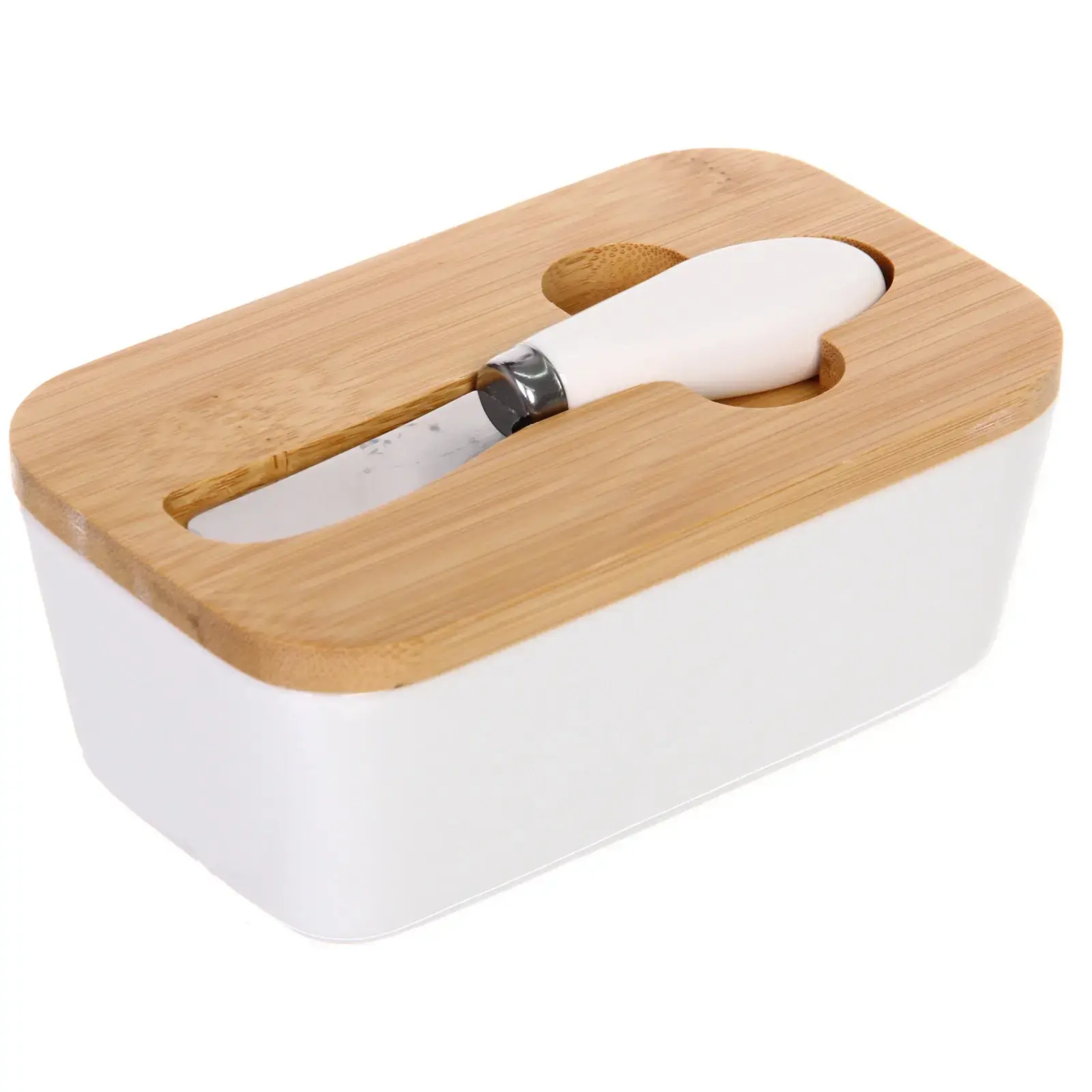 - Бамбуковая крышка защищает содержимое и служит подставкой