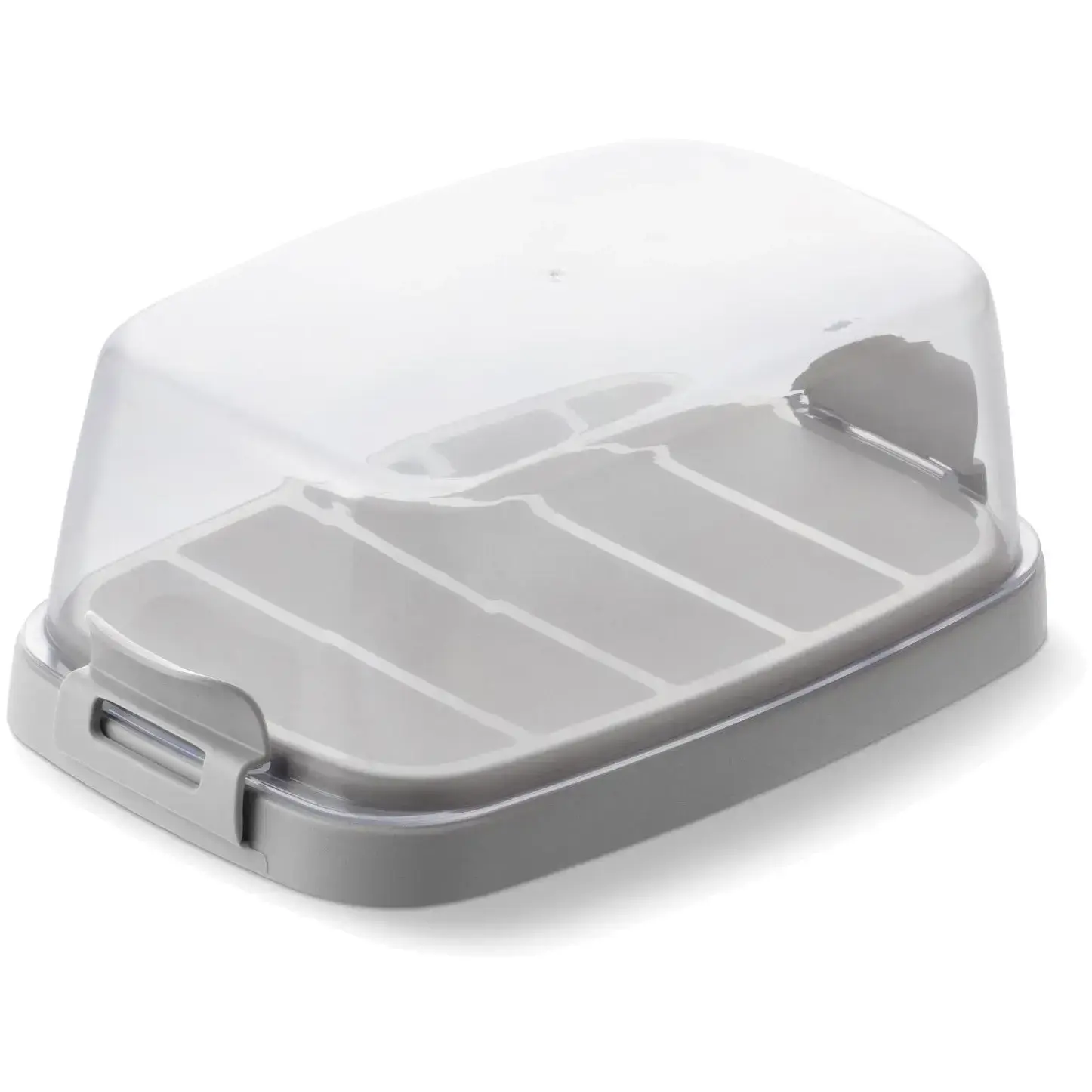 Масленка «Летиция» в пыльно-сером цвете — это не просто контейнер, а надежный помощник на вашей кухне. Она закрывается на защёлки, что обеспечивает удобство и безопасность хранения масла. Прозрачная крышка плотно прилегает к основанию, исключая проникновение воздуха, посторонних запахов и влаги, что позволяет сохранить свежесть продукта на долгое время.