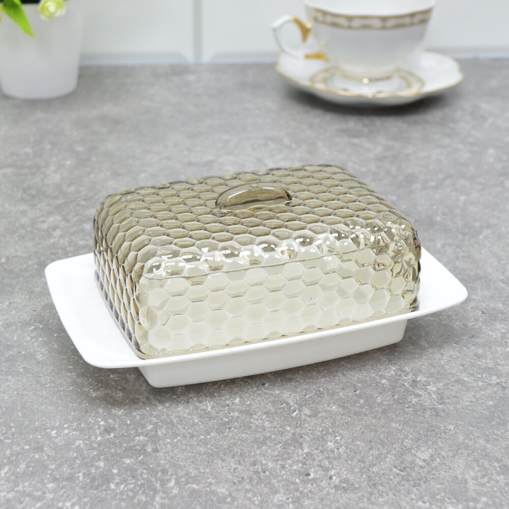 Масленка «Мозаика» сочетает практичность и эстетику — идеальный акцент для вашего стола. Плотная крышка с рельефным узором в виде сот сохраняет свежесть продуктов, превращая обычный предмет кухонной утвари в элемент декора.