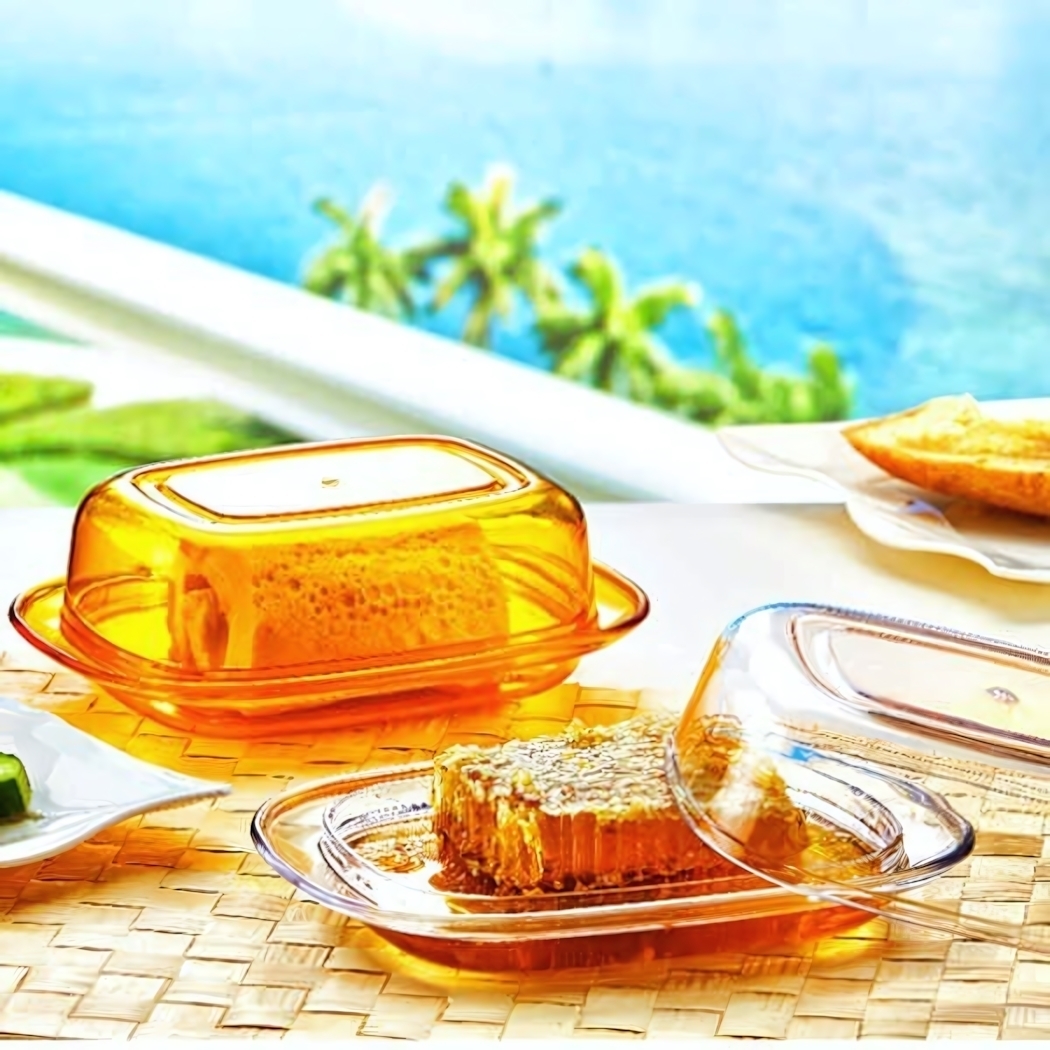 Эта масленка станет незаменимым помощником на вашей кухне, обеспечивая комфорт и практичность в использовании. Прозрачный дизайн позволяет легко видеть содержимое, а округлая форма контейнеров делает их идеальными для хранения различных продуктов, таких как мед или масло. Благодаря плотным крышкам, ваши продукты будут надежно защищены от загрязнений и потери свежести.