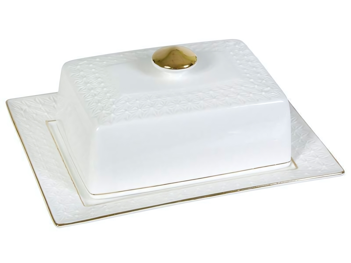 Фарфоровая масленка «Снежная Королева» сочетает в себе утонченный дизайн и практичность. Бархатистая текстура белого фарфора с золотистыми акцентами добавит нотку роскоши в любую трапезу, а герметичная крышка сохранит свежесть продуктов.