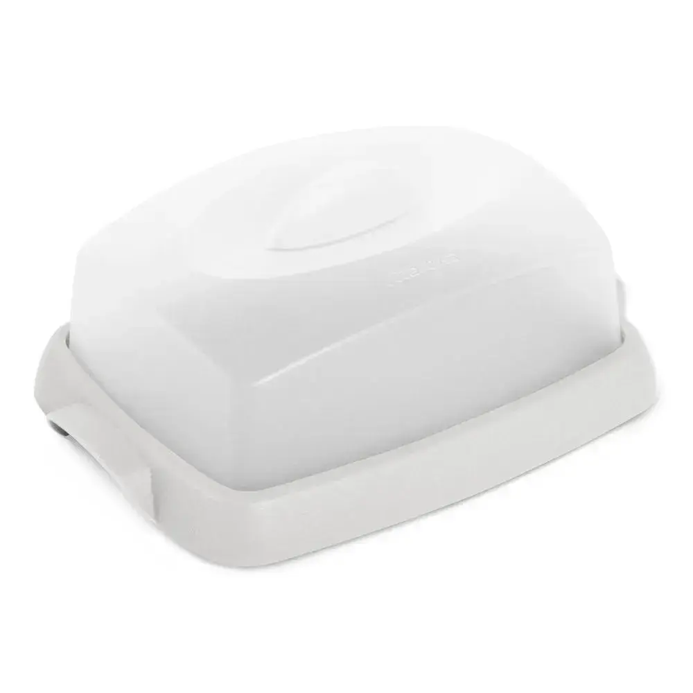 Масленка выполнена из качественного пластика, устойчивого к регулярному мытью и царапинам. Ее легко очищать и использовать повторно. Светло-серый оттенок основания сочетается с полупрозрачной крышкой, что подчеркивает чистоту и свежесть содержимого.