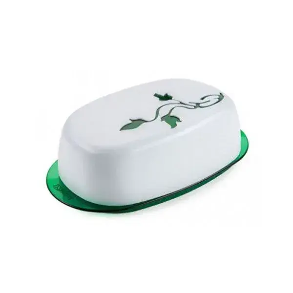 Масленка пластиковая 'Viola' с крышкой, зеленый полупрозрачный, дизайн ветка и птичка