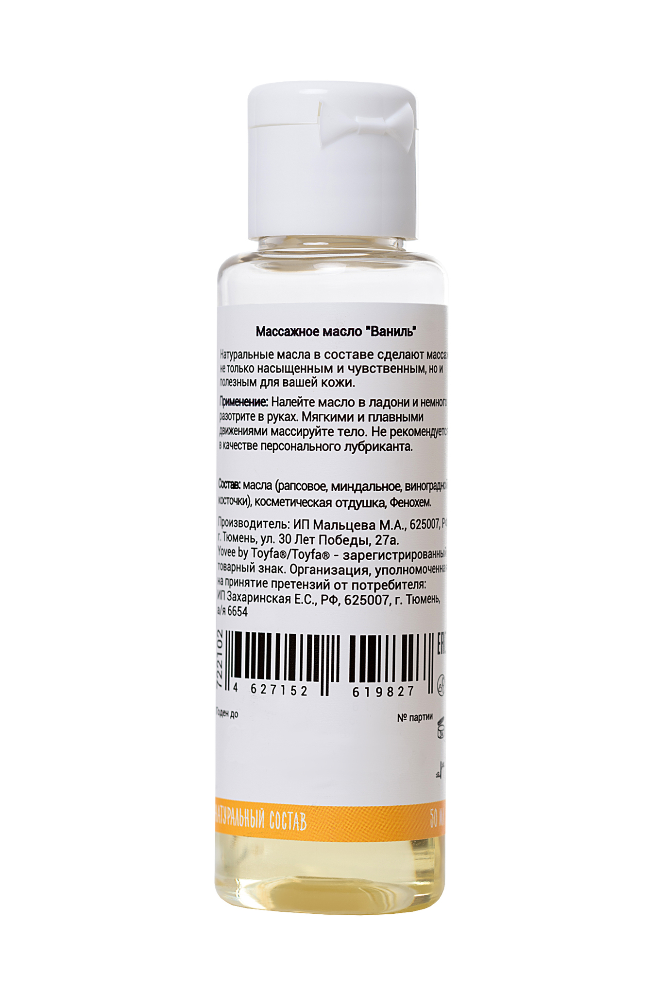 Масло для массажа 'Чувственный массаж' создано для тех, кто ценит качество и атмосферу. Приятный аромат ванили помогает расслабиться и настроиться на романтическую волну.