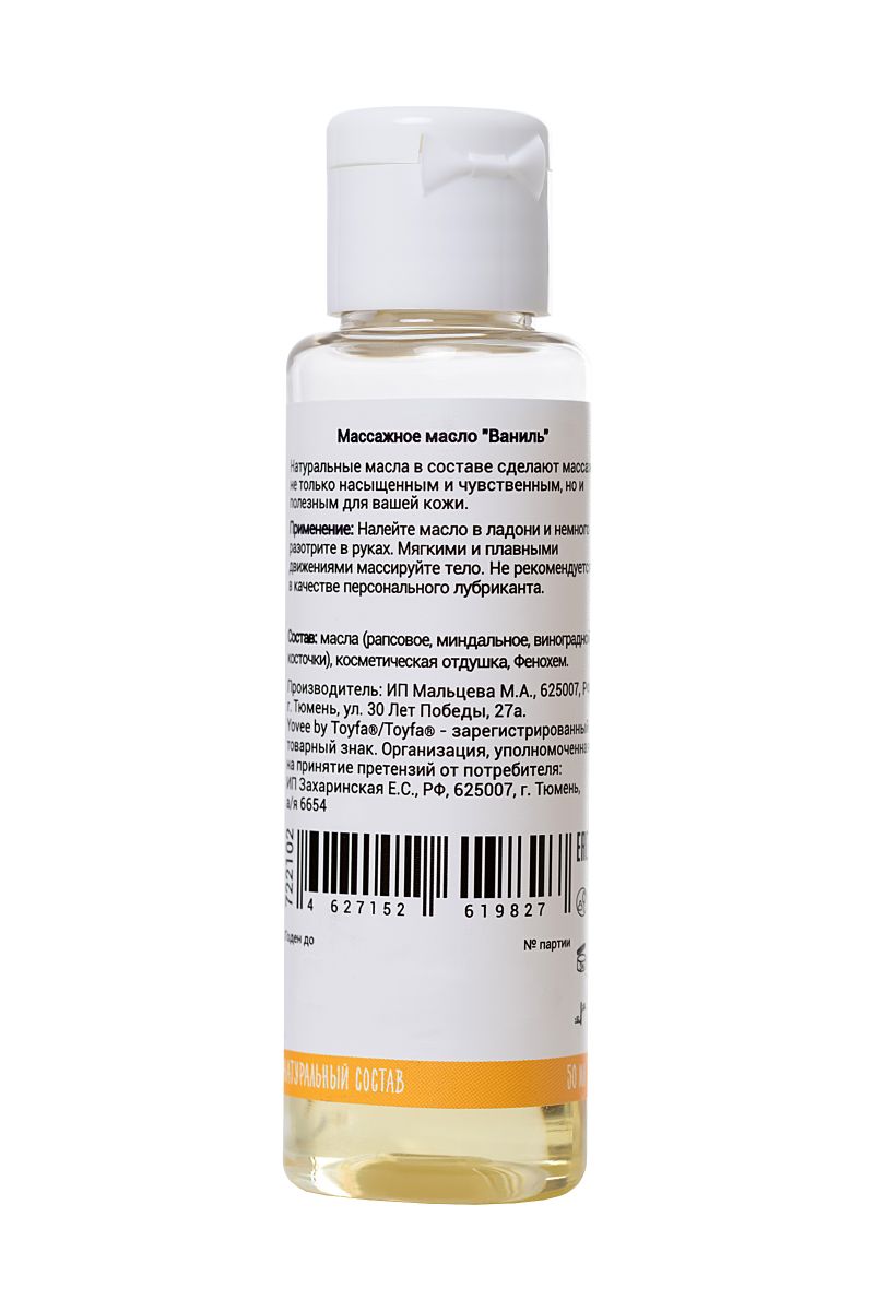 Массажное масло «Yovee» с ароматом ванили, 50 мл, натуральный состав для чувственного ухода