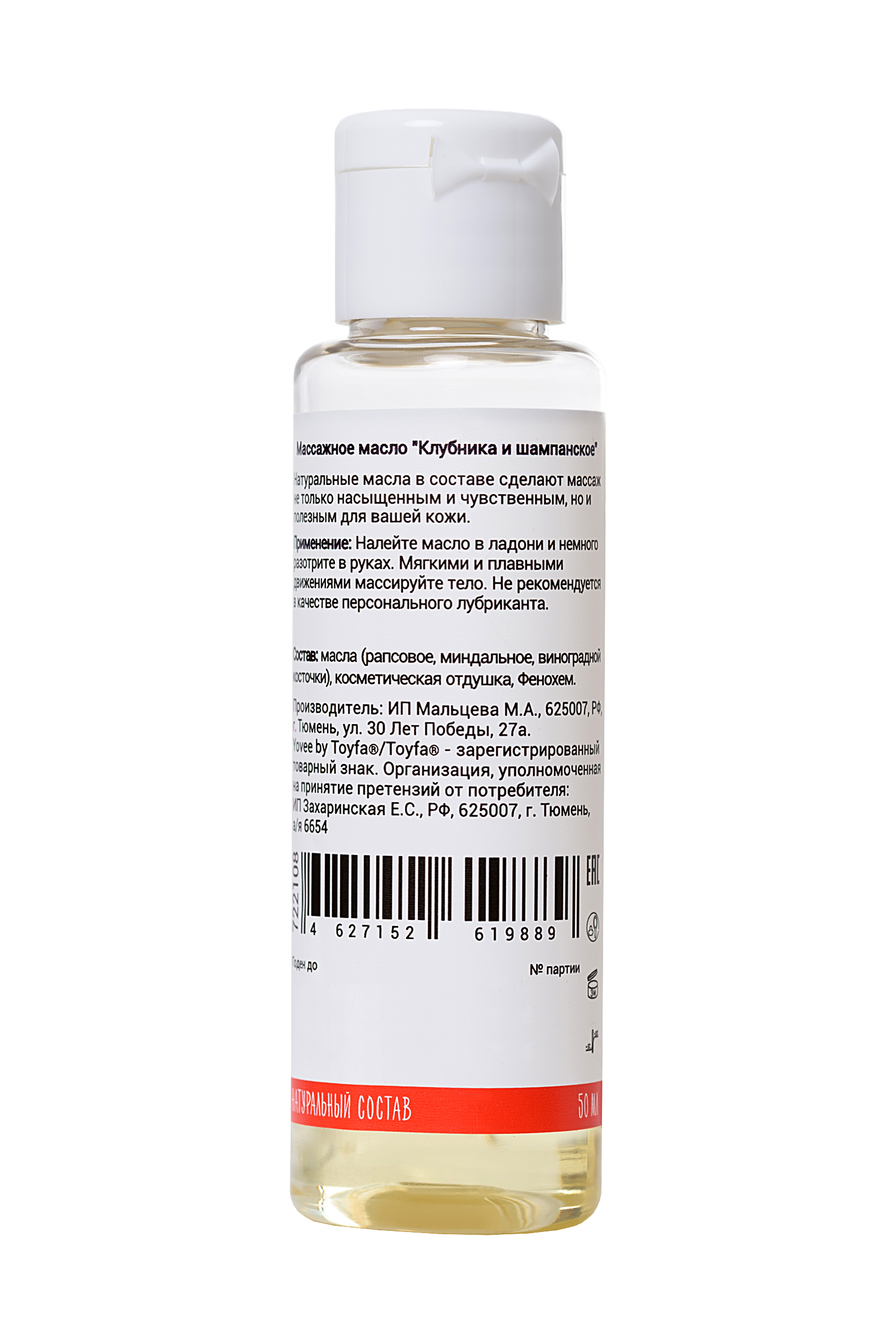 Массажное масло «Романтический массаж» с ароматом клубники и шампанского, 50 мл, масляная основа