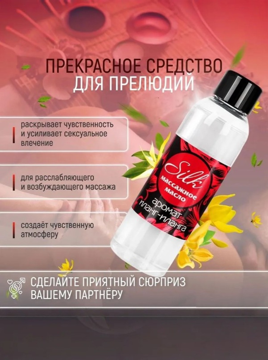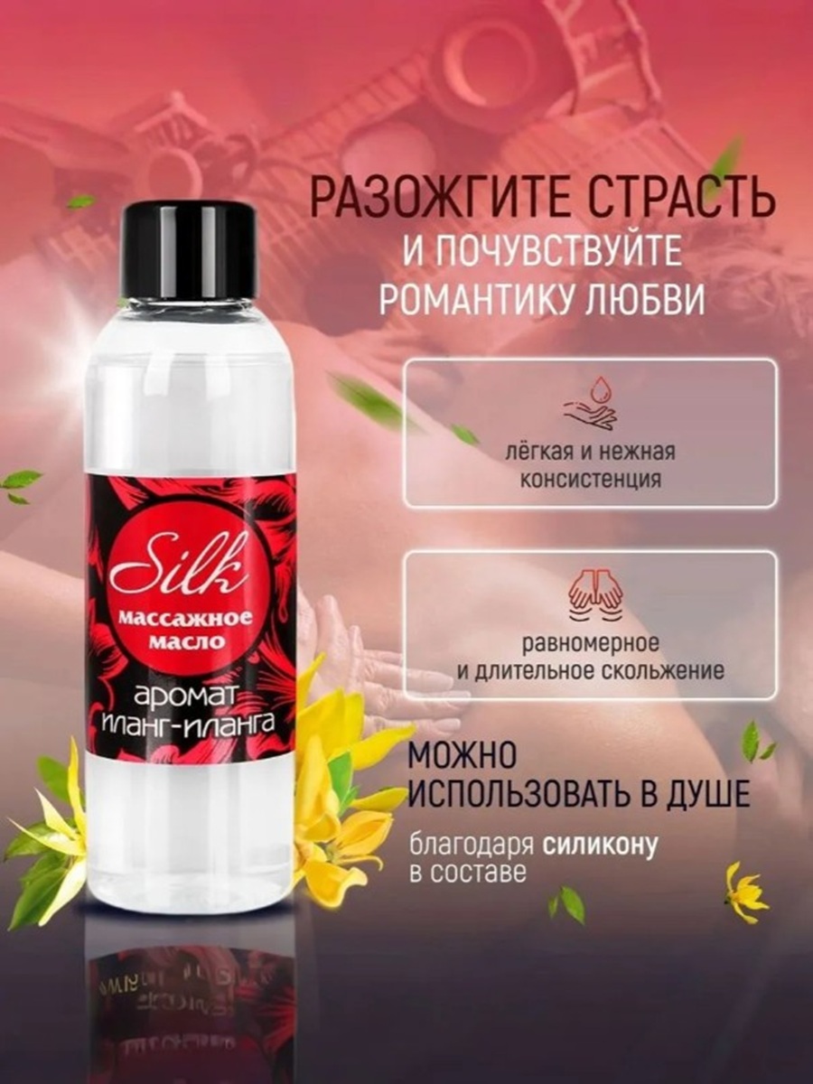 Масло массажное "Silk" создано для тех, кто ценит нежность, комфорт и особую атмосферу близости. Тонкий аромат иланг-иланга помогает расслабиться и создать эротическое настроение.