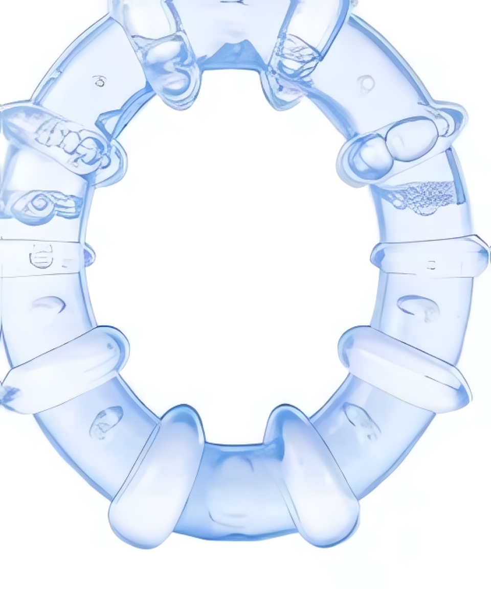 Прорезыватель наполнен очищенной дистиллированной водой, что позволяет использовать его для охлаждения воспаленных участков. Достаточно ненадолго поместить массажер в холодильник (не в морозильную камеру), чтобы он накопил прохладу. Бережное воздействие холода помогает сузить сосуды, снять отек и зуд, что значительно облегчает состояние малыша и возвращает ему хорошее настроение. Рельефная поверхность кольца с различными текстурами обеспечивает мягкий массаж десен, стимулируя кровообращение и помогая зубам прорезаться быстрее.