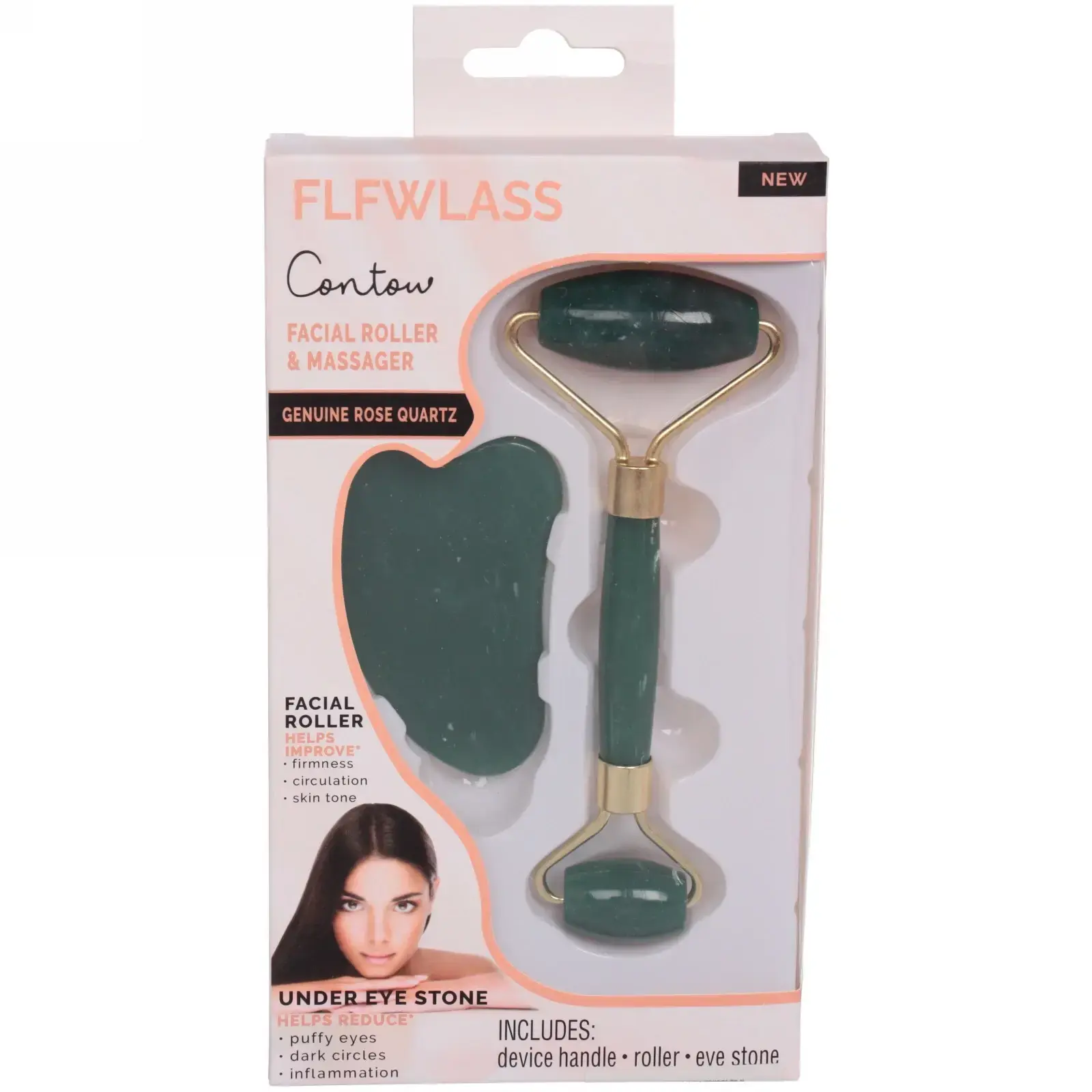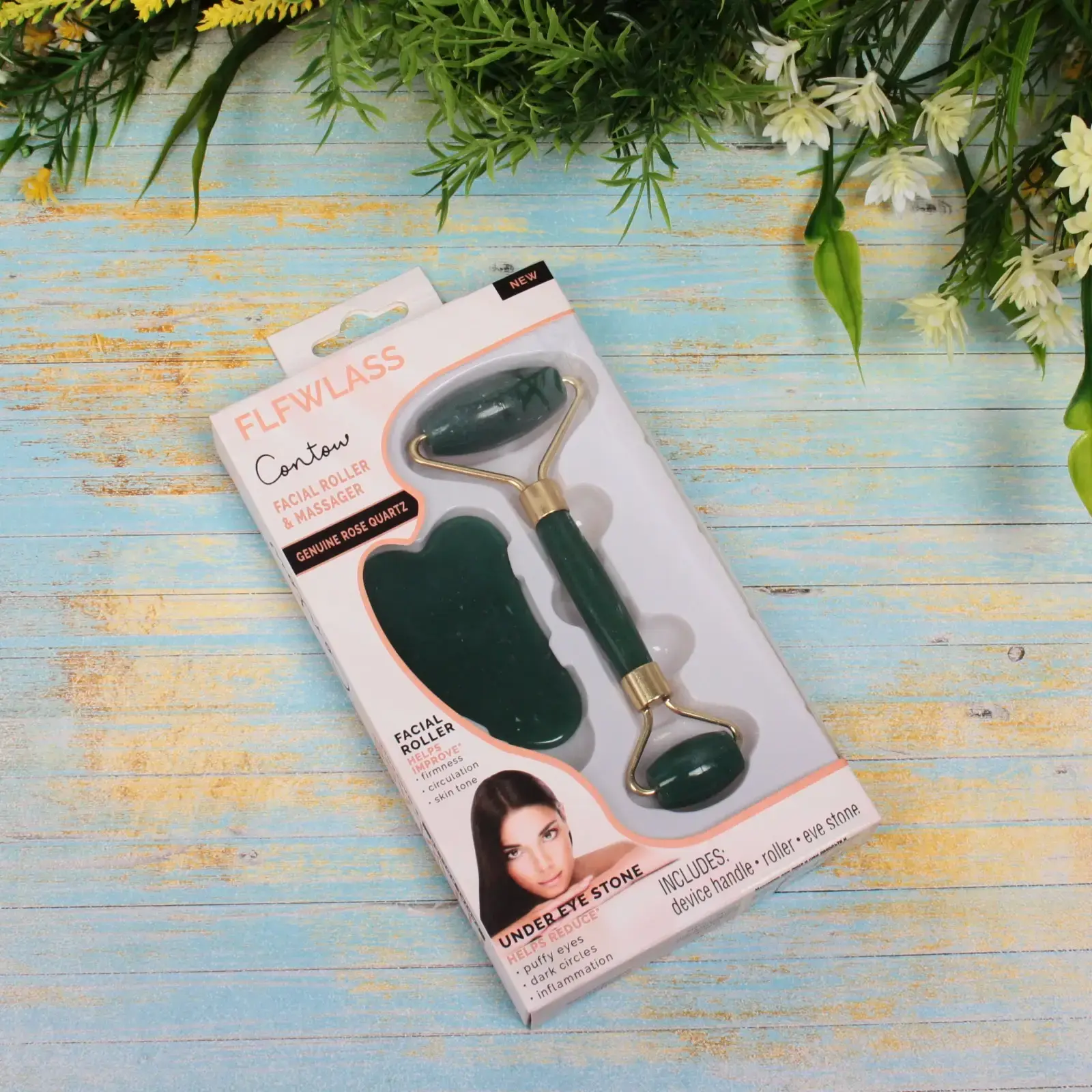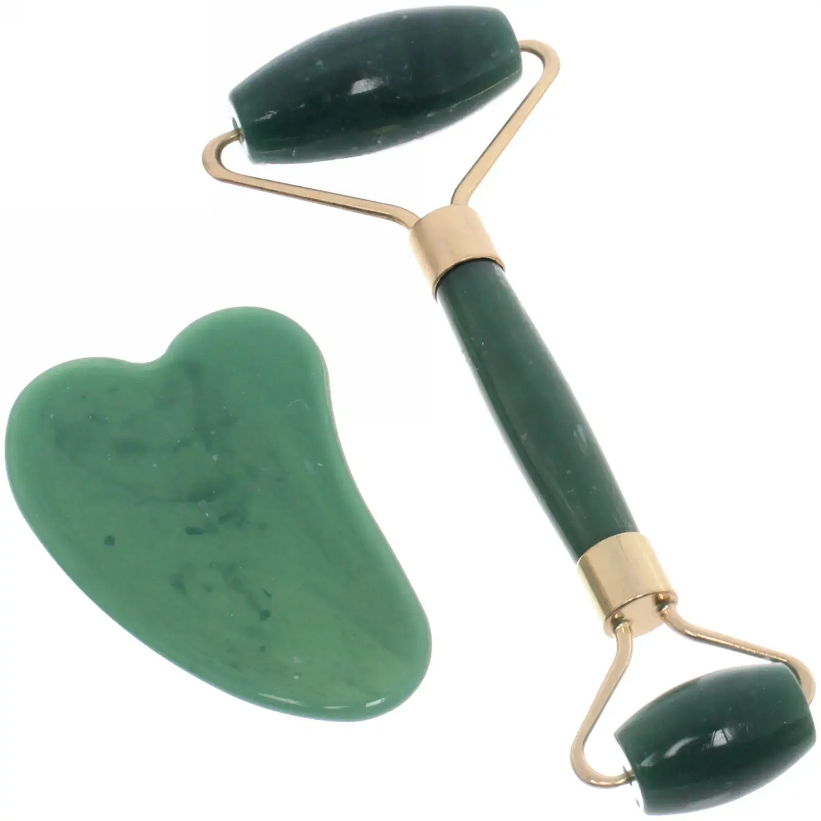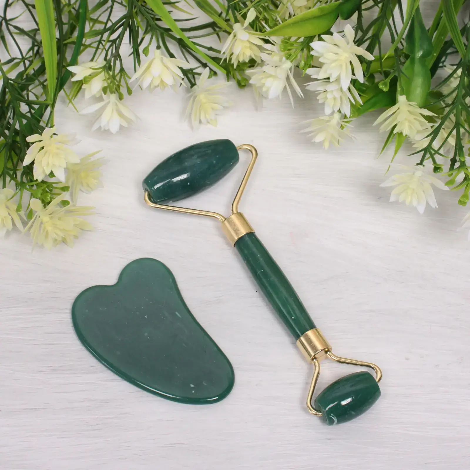 Массажер состоит из двух инструментов: роллера с двумя головками и скребка в форме сердца. Оба инструмента выполнены из изумрудного опала, что придает им эстетичный вид и обеспечивает легкость в использовании. Роллер предназначен для массажа щек, лба и подбородка, а скребок — для области шеи и декольте. Размеры инструментов идеально подходят для комфортного использования.