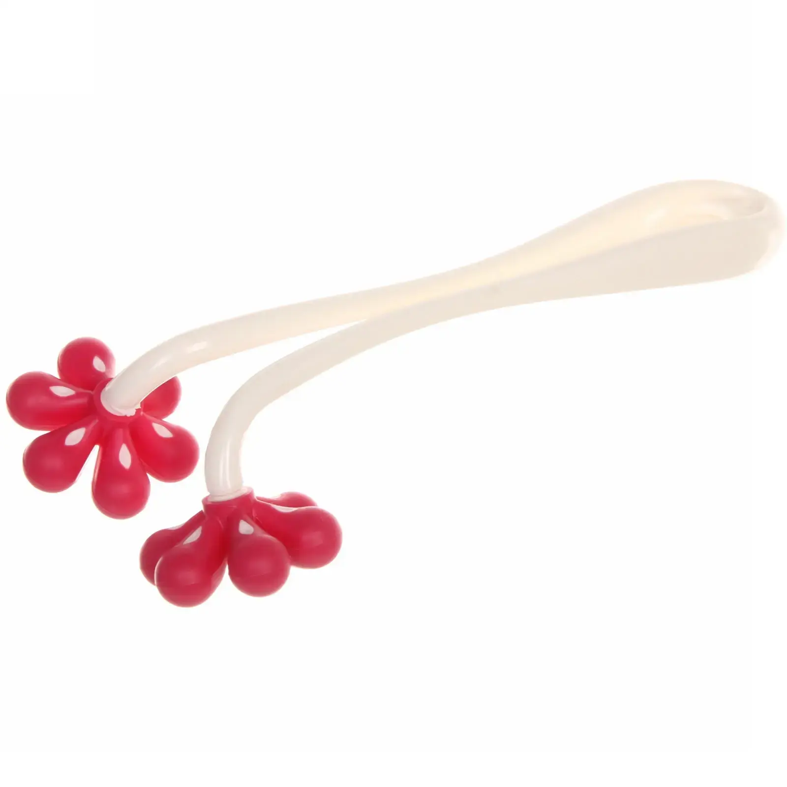 Массажер имеет изогнутую форму, что позволяет легко захватывать его и использовать с комфортом. Красные цветочные элементы на концах добавляют эстетичный вид и делают его привлекательным аксессуаром. Не упустите возможность улучшить состояние вашей кожи с массажером «Beauty House»!