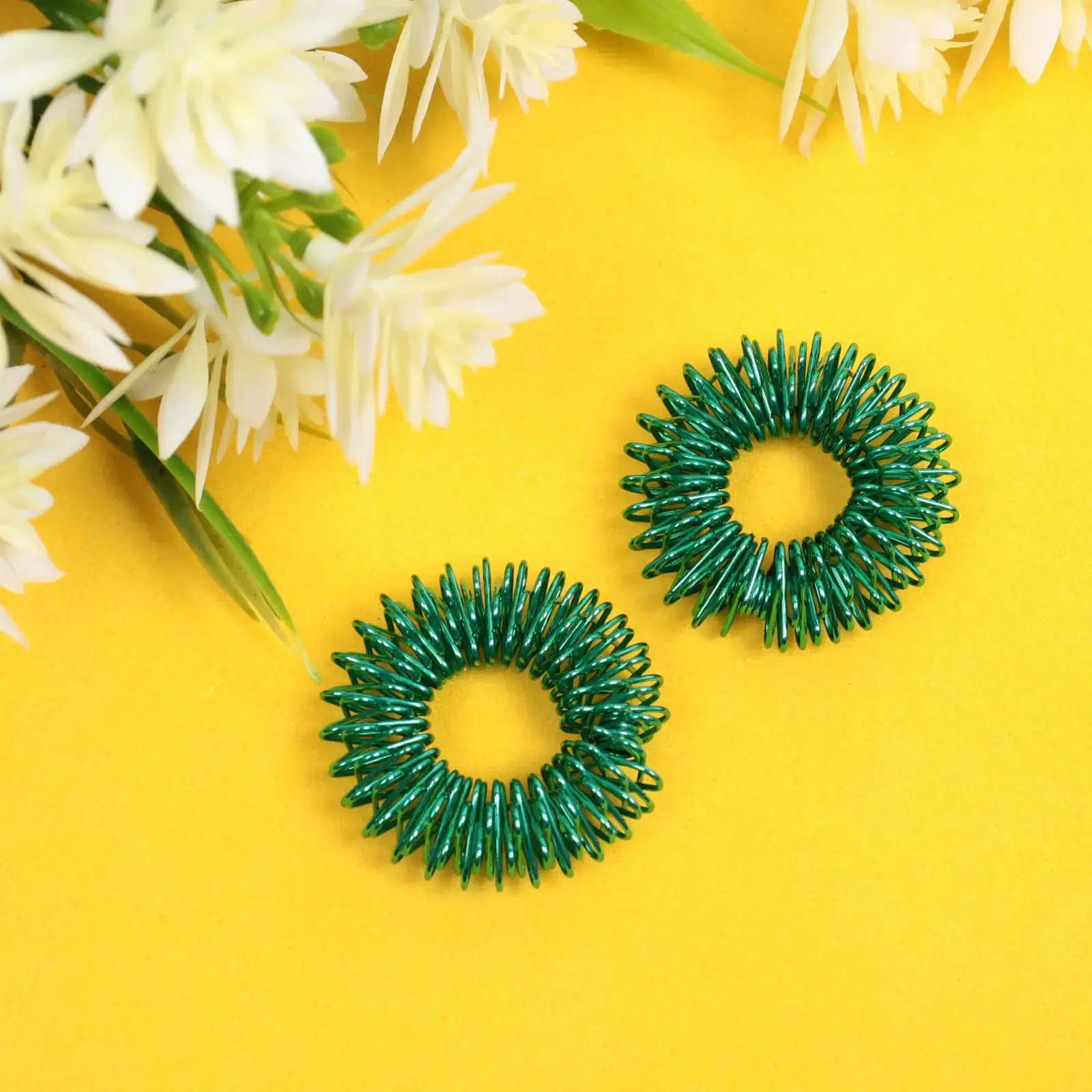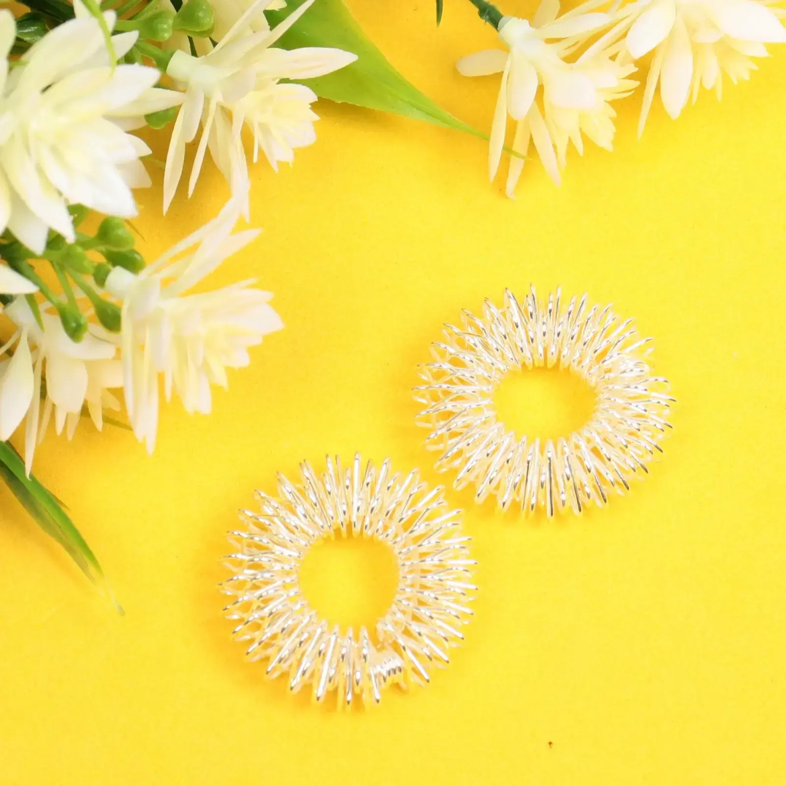 Массажер выполнен из качественных материалов: металл и пластик, что обеспечивает его долговечность и надежность. Размеры массажера составляют 3 см в диаметре и 0,9 см в высоту, что делает его удобным для использования на пальцах. В упаковке вы получите два массажера, что позволяет использовать их одновременно на разных пальцах или делиться с близкими.