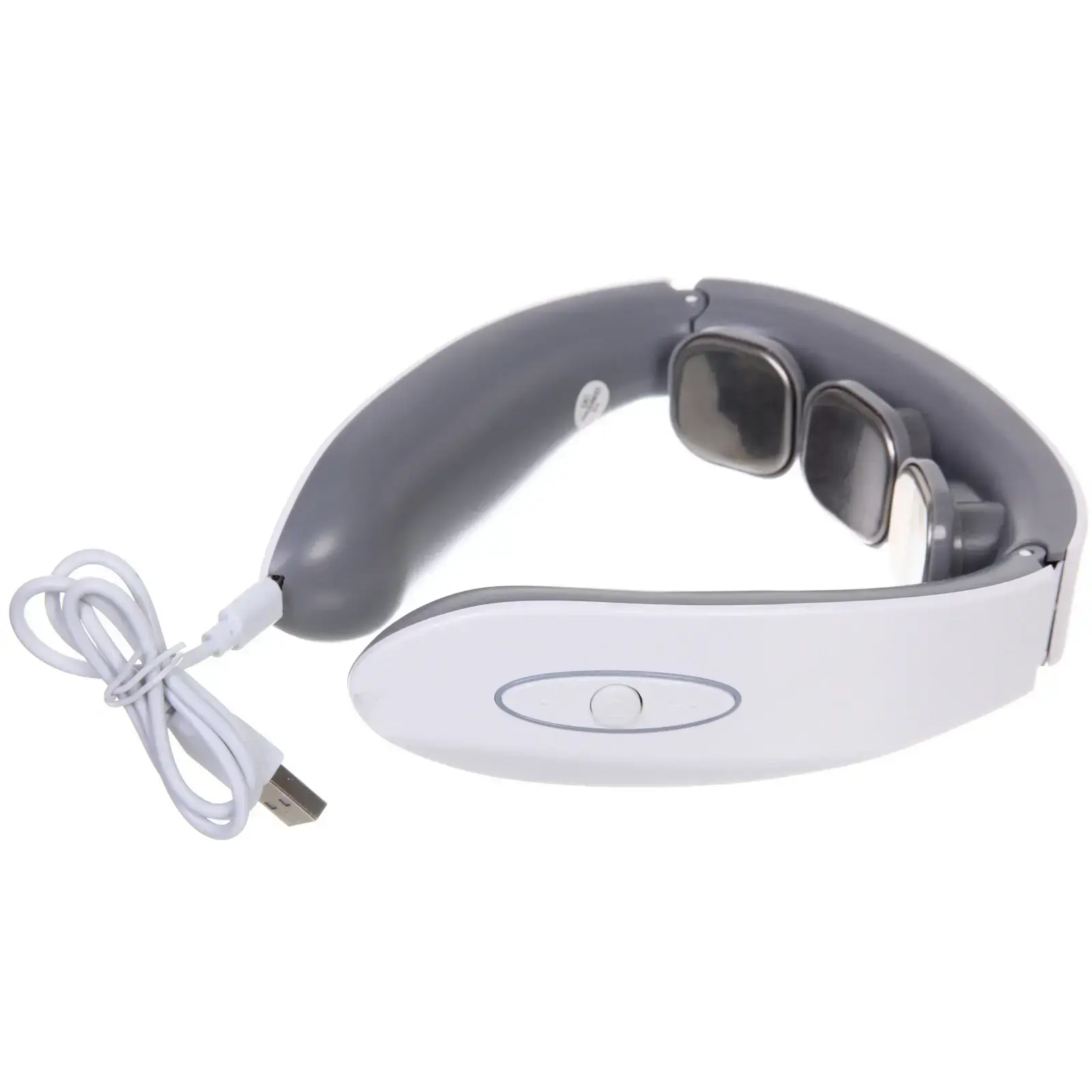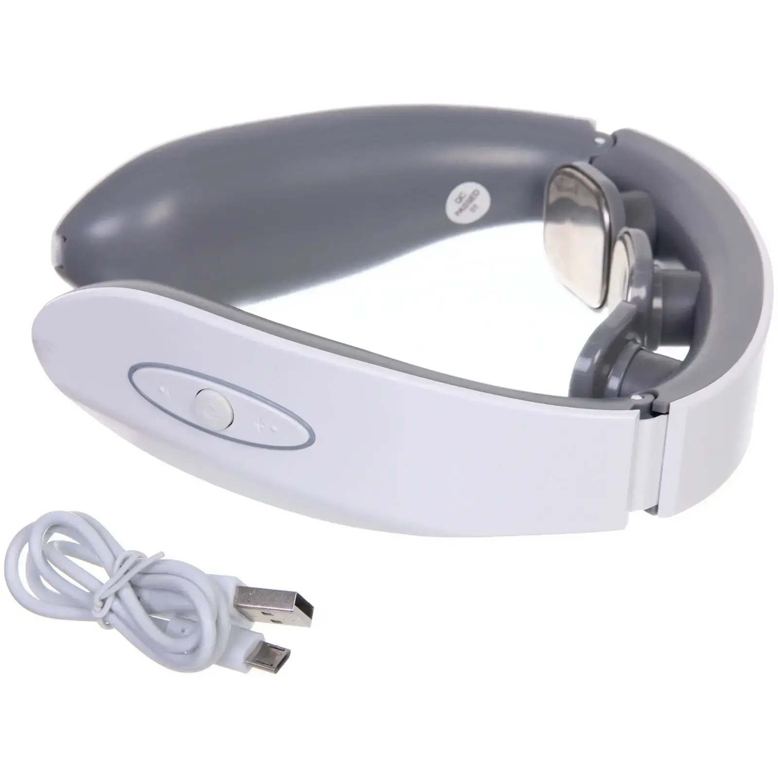 Массажер выполнен в белом и сером цветах, что делает его стильным дополнением к вашему интерьеру. Он изготовлен из качественных материалов, таких как металл и пластик, что обеспечивает долговечность и надежность. Устройство имеет эргономичную форму, которая идеально обхватывает шею, обеспечивая максимальный комфорт во время использования.