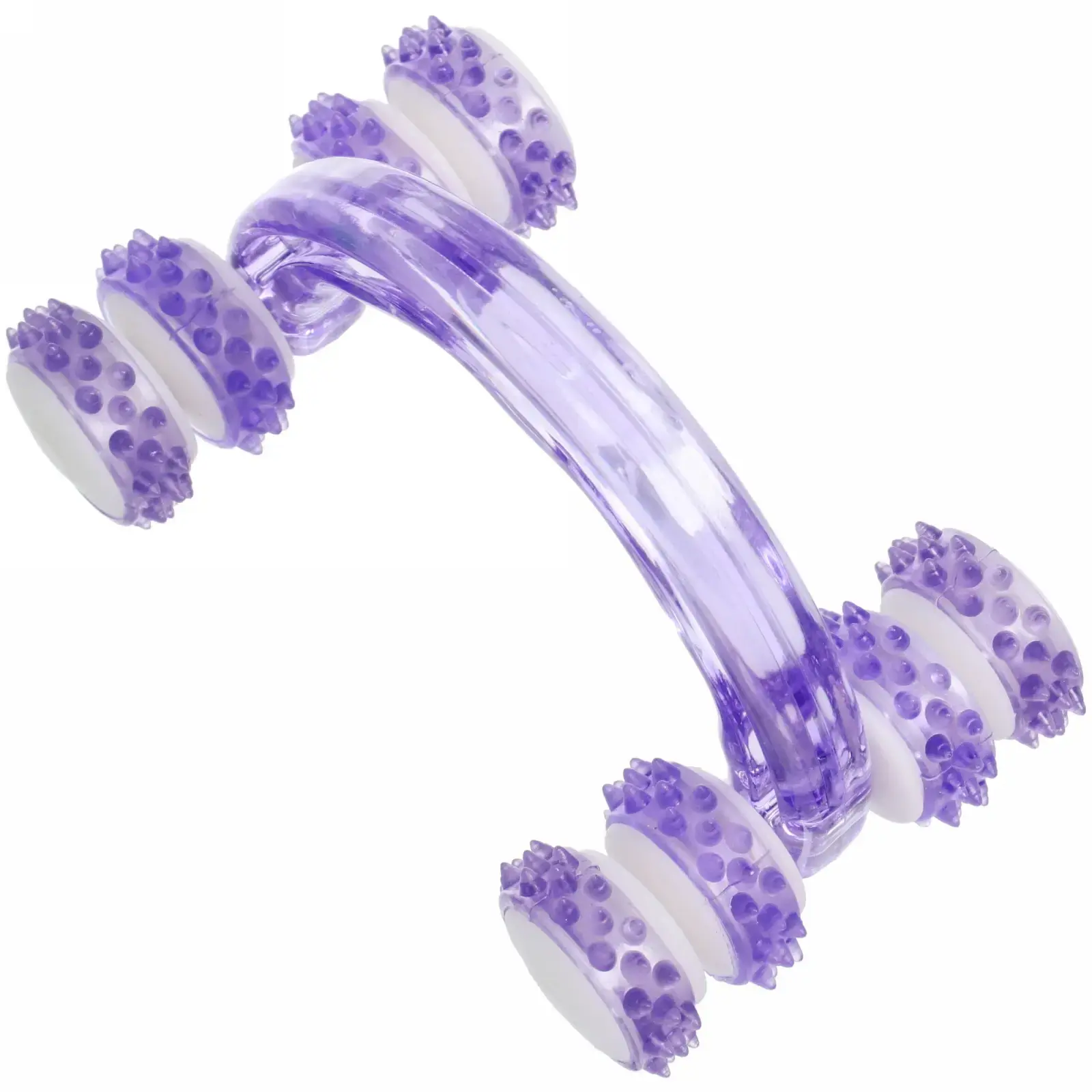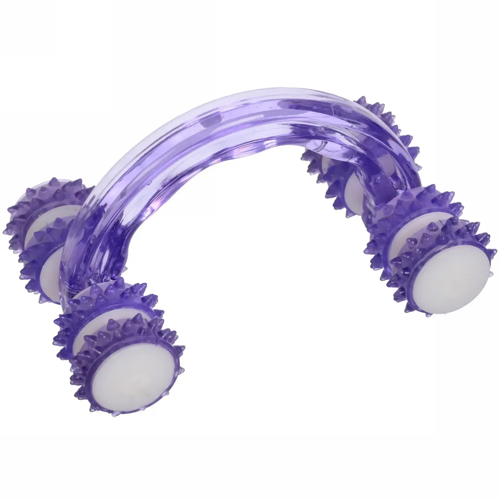 Почему стоит выбрать именно этот массажер? Во-первых, его ролики оснащены шипами, которые эффективно прорабатывают мышцы, улучшая кровообращение и способствуя расслаблению. Во-вторых, материал изготовления — прочный и легкий пластик, что делает массажер долговечным и удобным в использовании. Кроме того, фиолетовый цвет добавляет эстетики и стиля в ваш уход за собой.