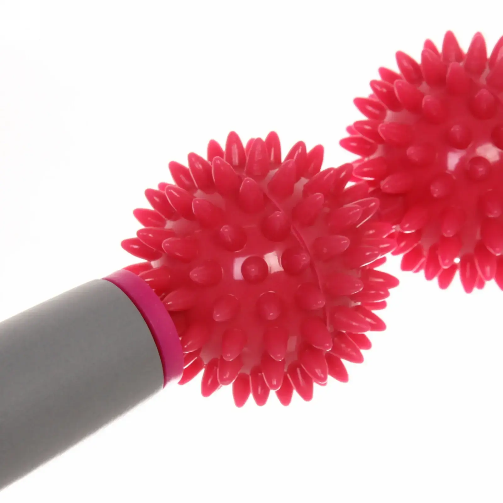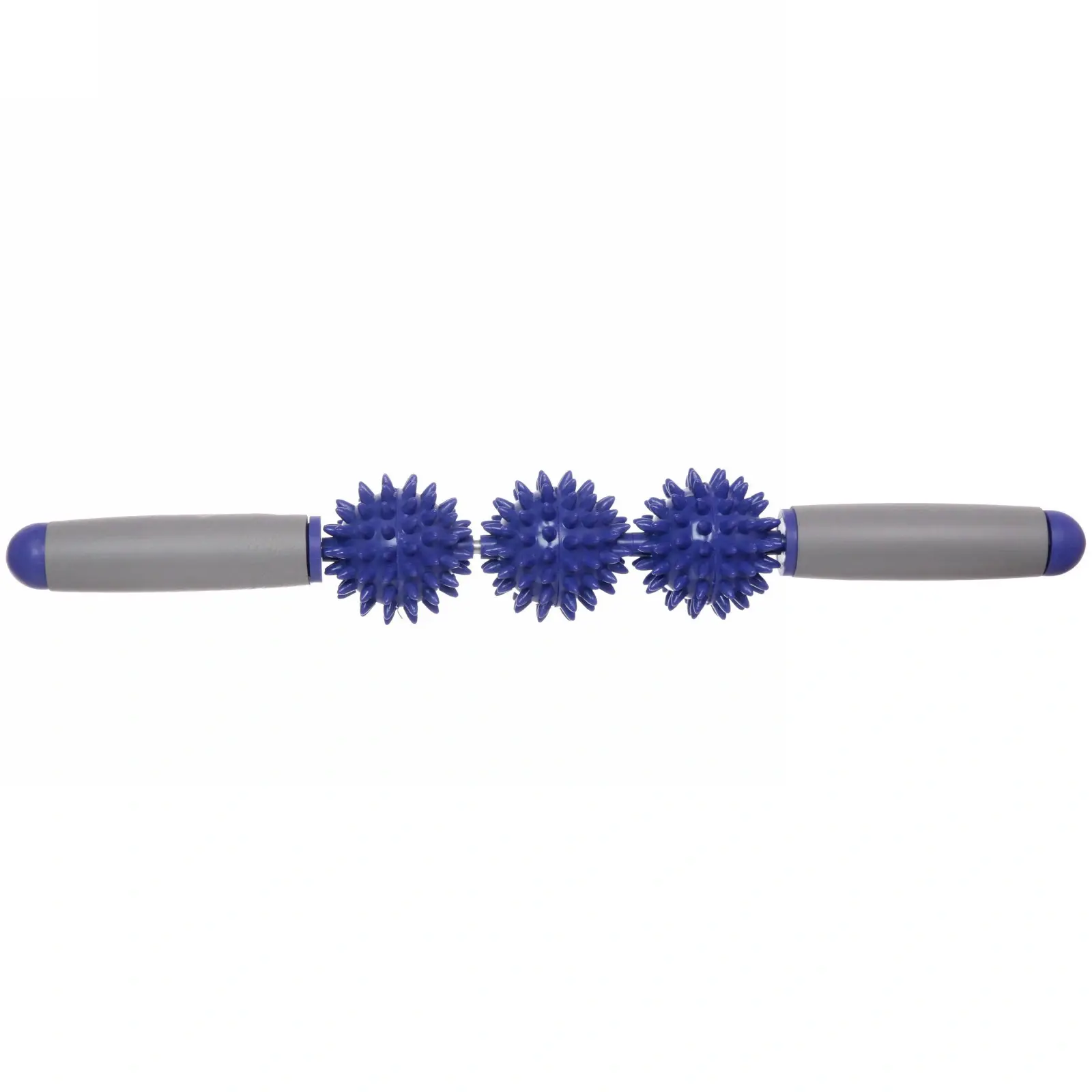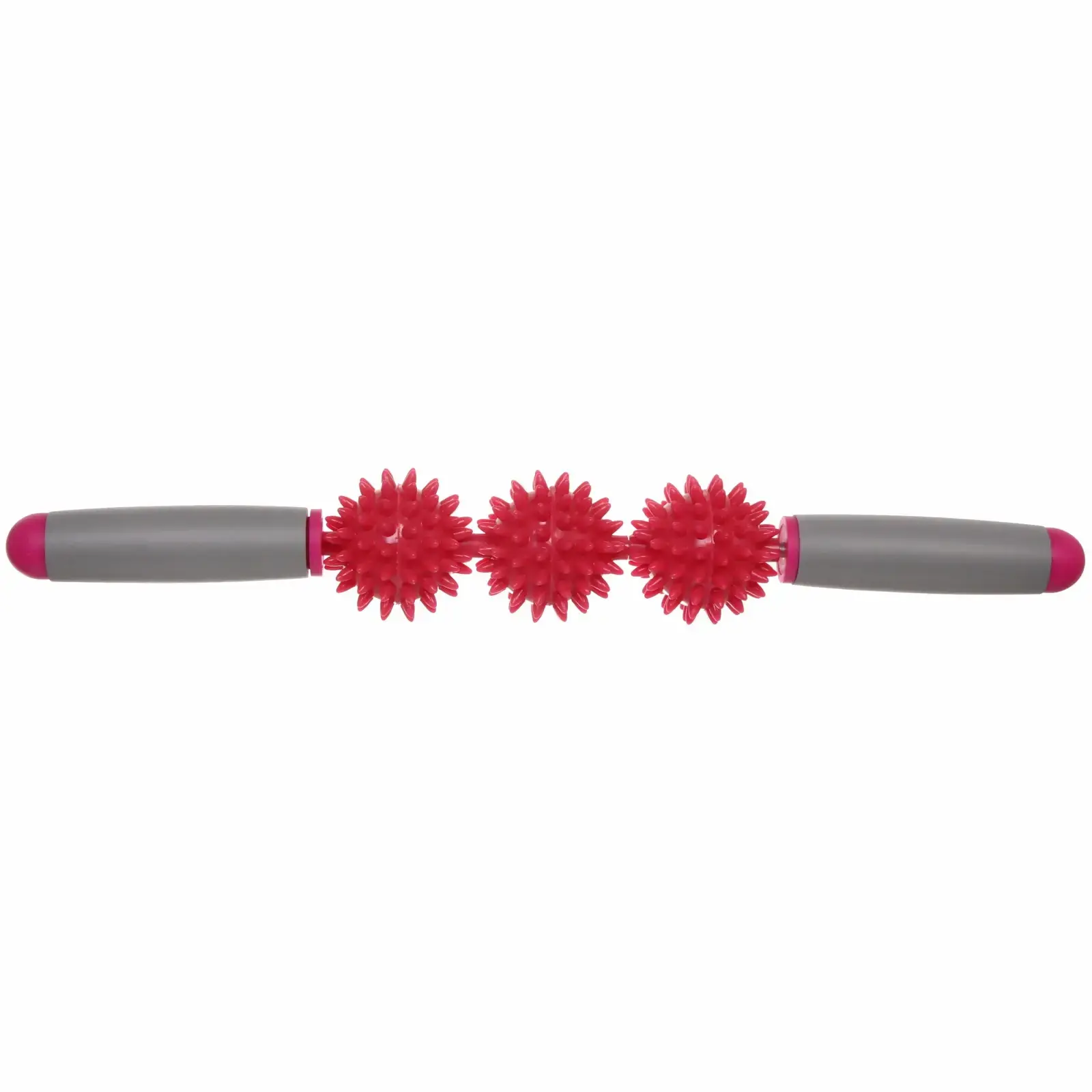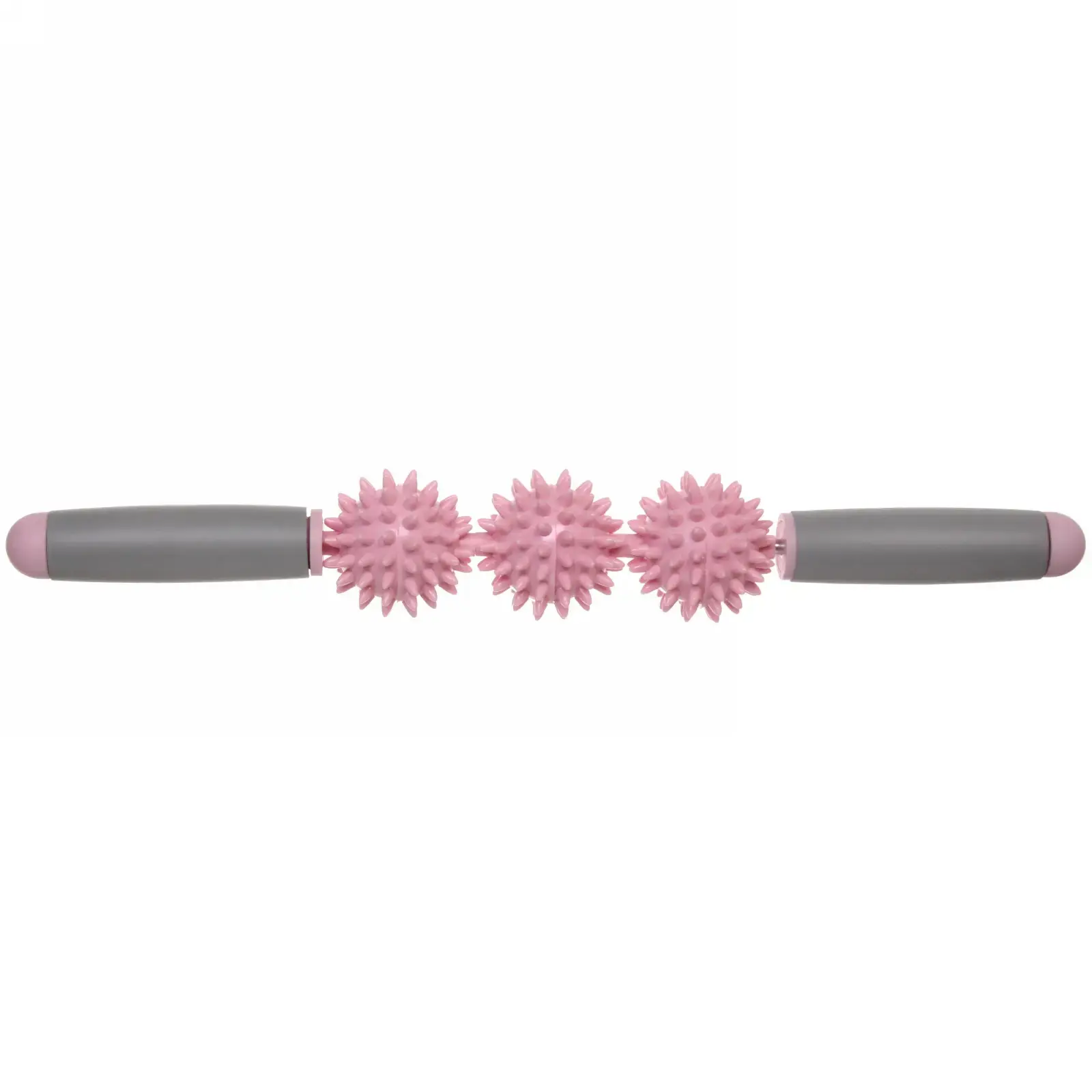 Эргономичные ручки с противоскользящим покрытием обеспечивают удобный захват. Три независимых ролика с шипами разного диаметра создают эффект профессионального массажа. Сочетание жёсткого ПВХ и ударопрочного пластика гарантирует долговечность при активном использовании.