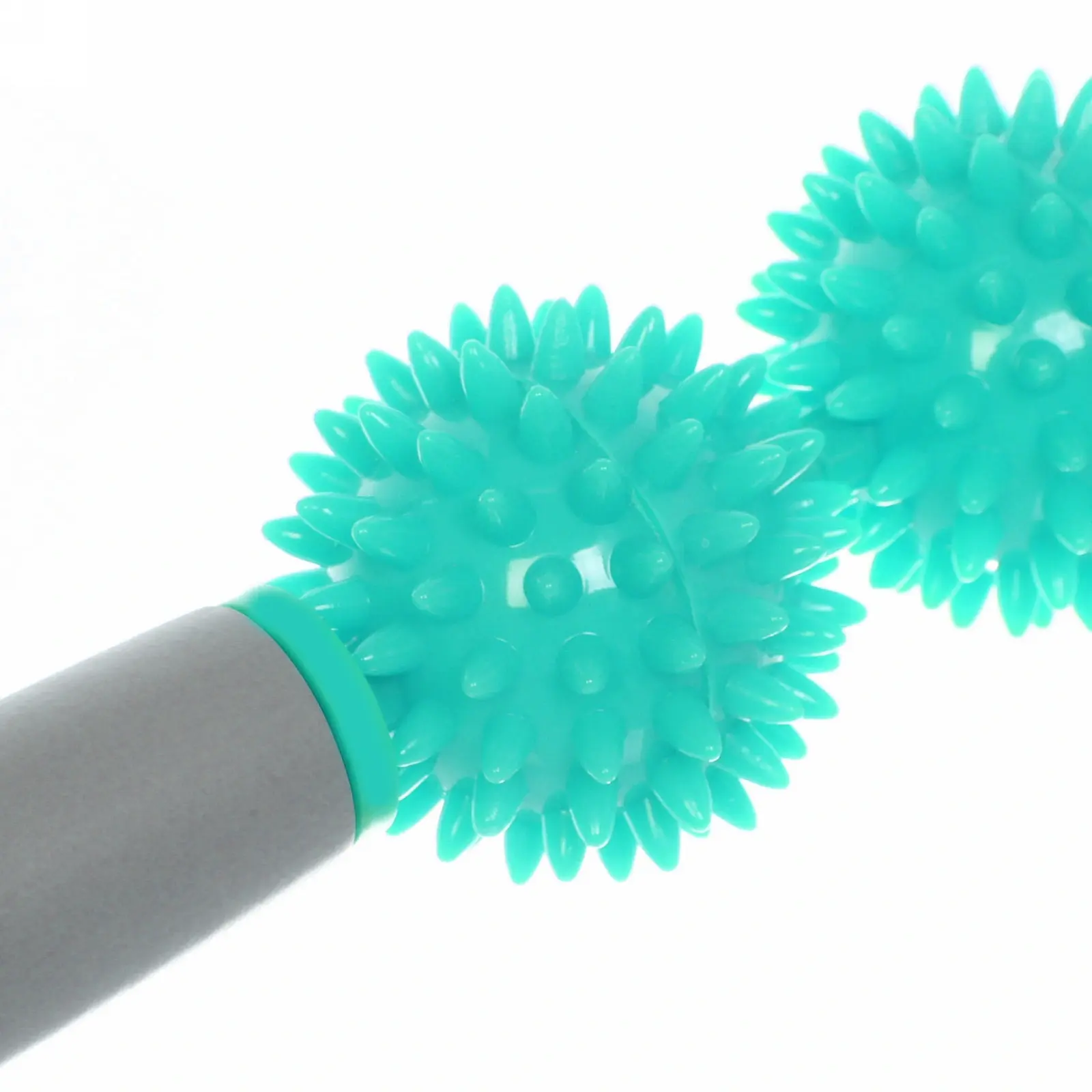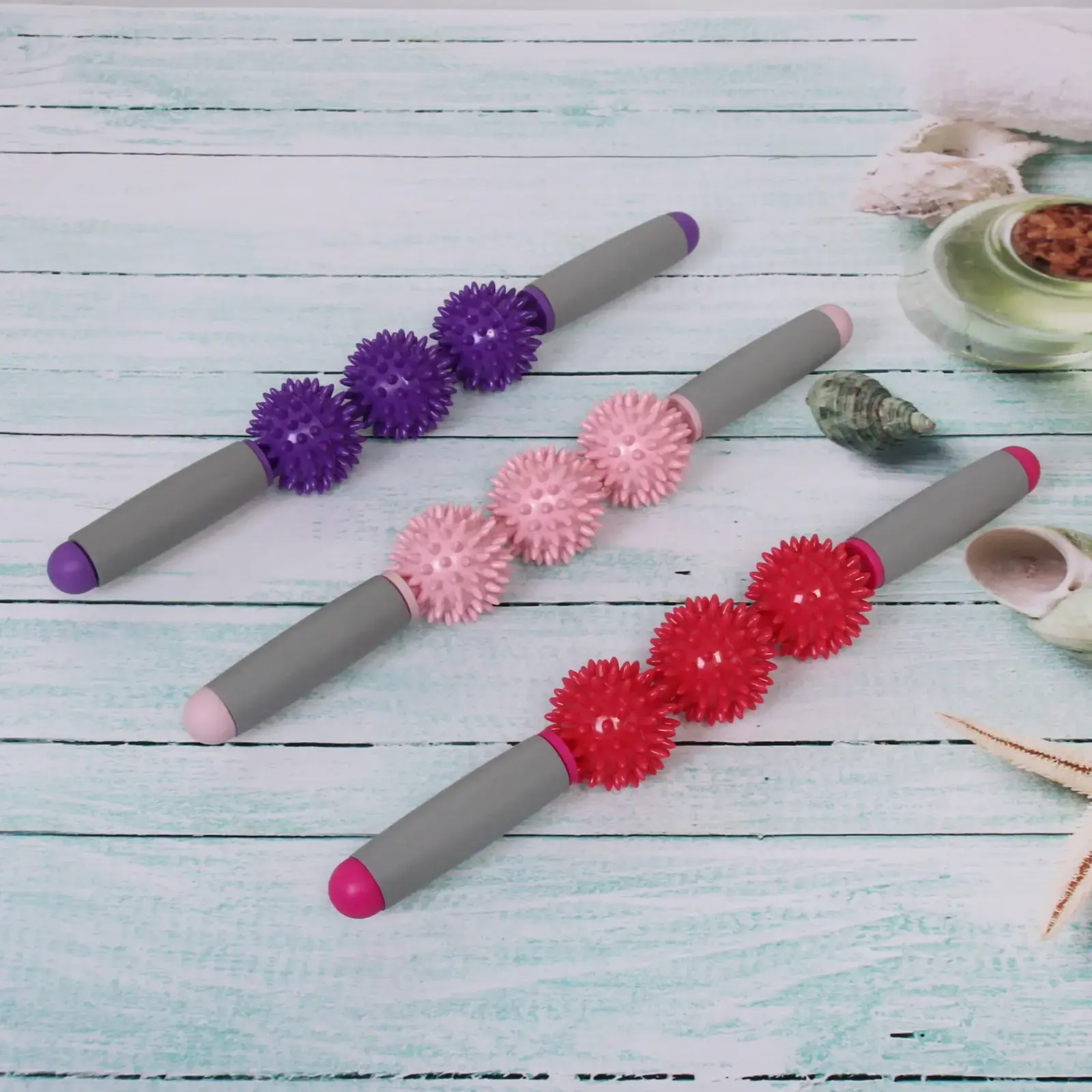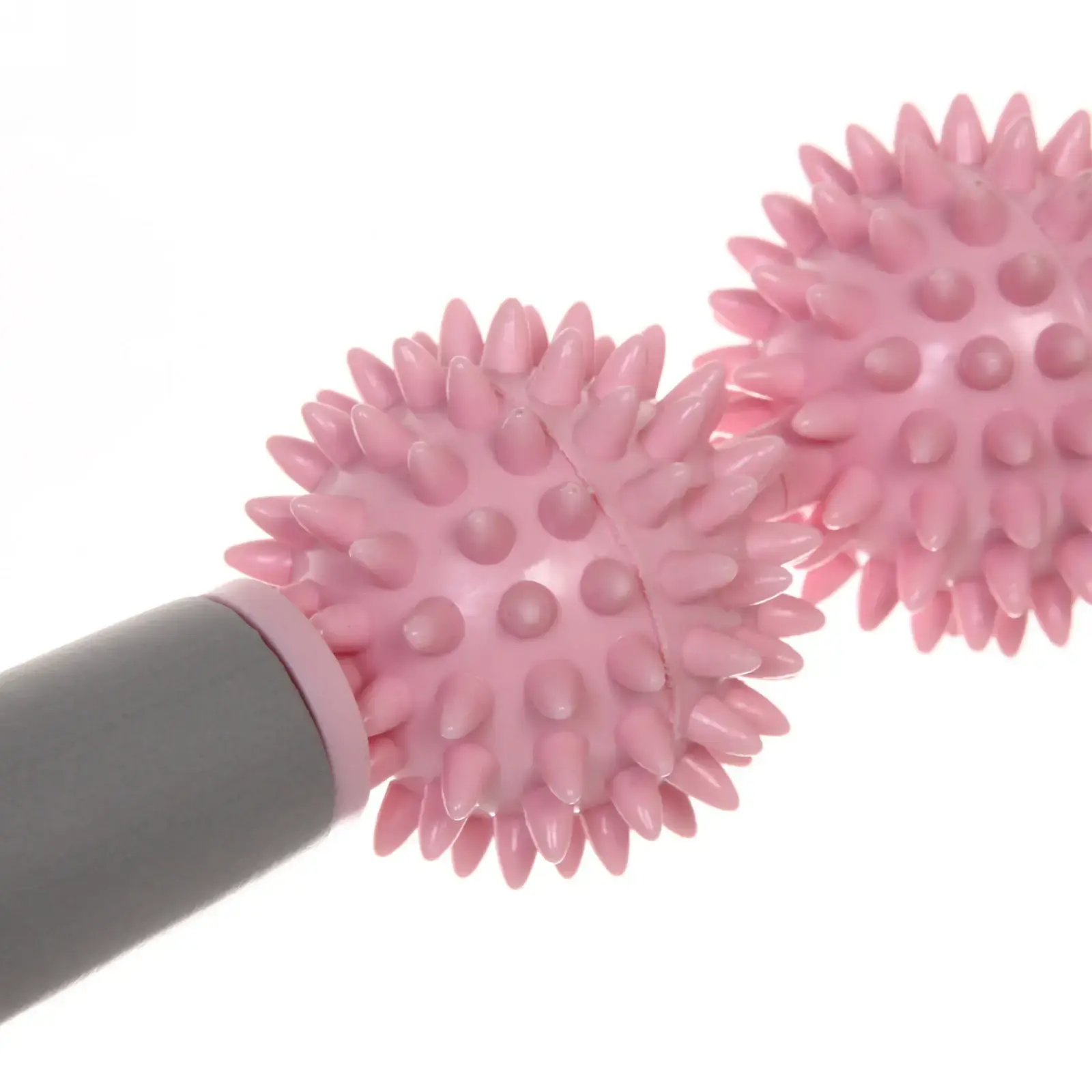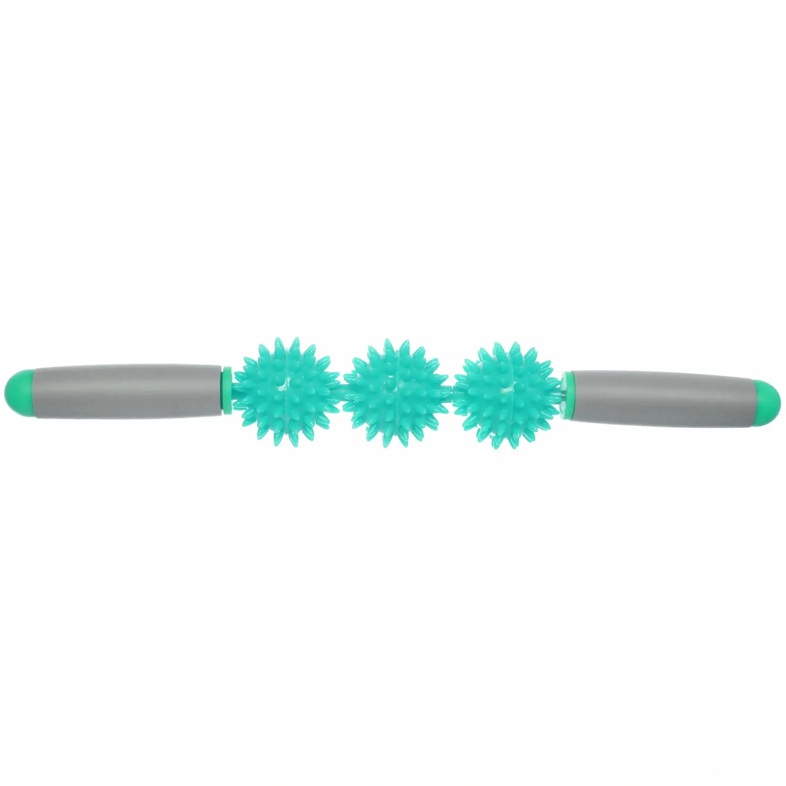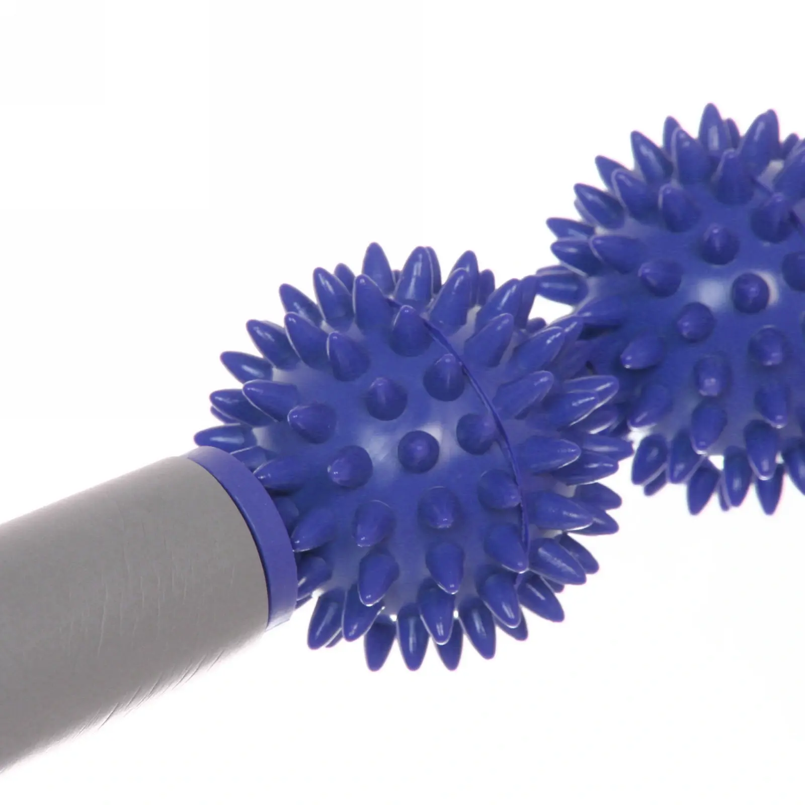 Эргономичные ручки с противоскользящим покрытием обеспечивают удобный захват. Три независимых ролика с шипами разного диаметра создают эффект профессионального массажа. Сочетание жёсткого ПВХ и ударопрочного пластика гарантирует долговечность при активном использовании.