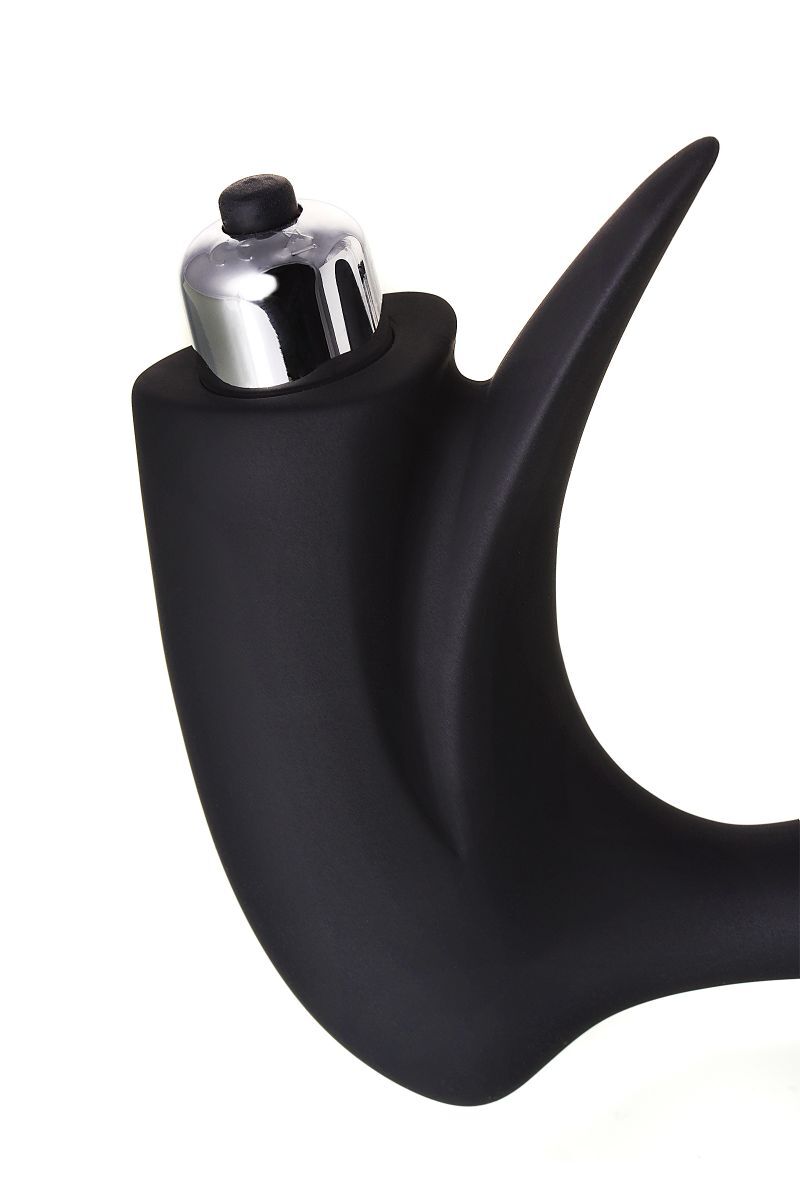 Массажер простаты «First» 2 в 1, черный силикон, 14.4 см, вибрация для P-точки и мошонки