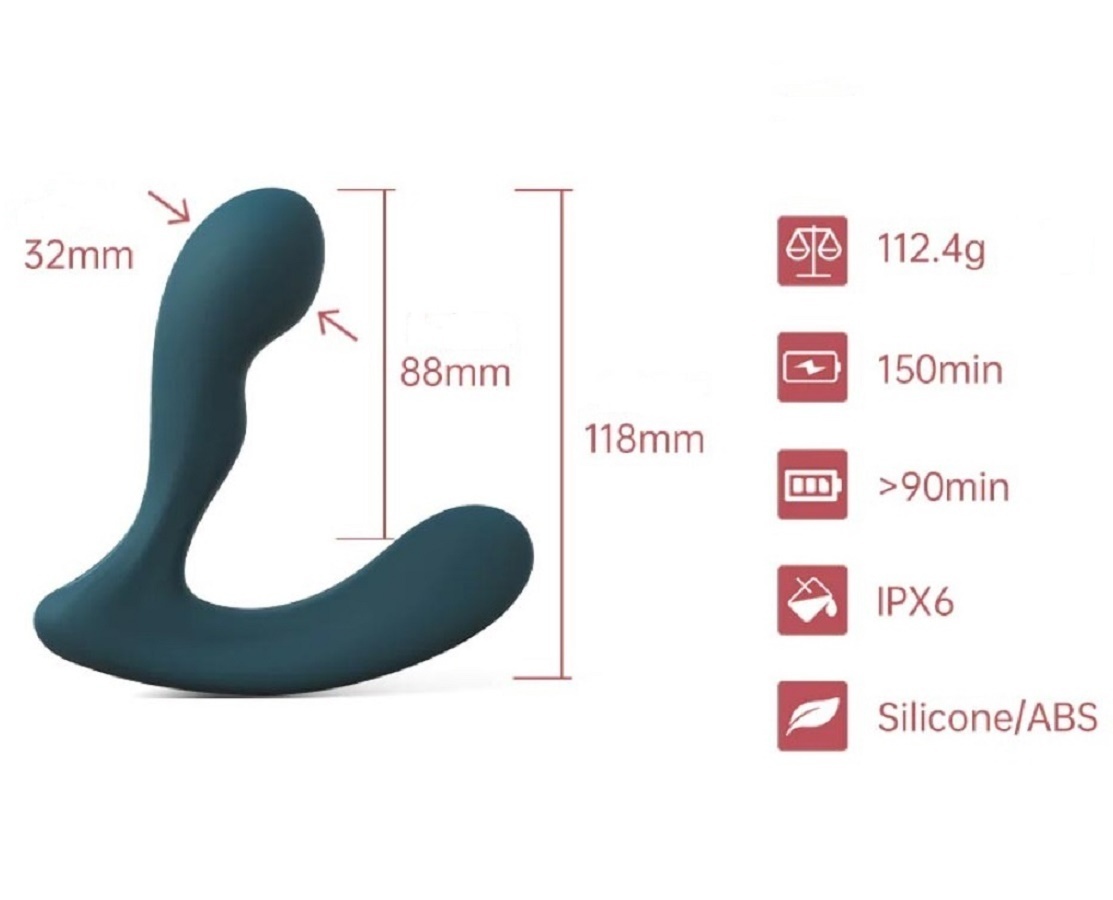 Массажер простаты Solstice X с двойным воздействием, бирюзовый, 11,8 см, водонепроницаемый, 7 режимов