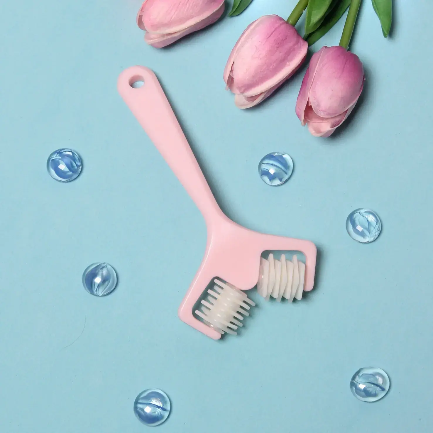 Почему стоит выбрать именно этот массажер? Во-первых, он изготовлен из качественного пластика, что обеспечивает долговечность и надежность. Во-вторых, массажер имеет две разные массажные поверхности: гребенчатую и гладкую, что позволяет использовать его для различных техник массажа. Это делает его универсальным инструментом для ухода за кожей. Кроме того, его стильный дизайн и микс цветов добавят ярких акцентов в ваш косметический арсенал.