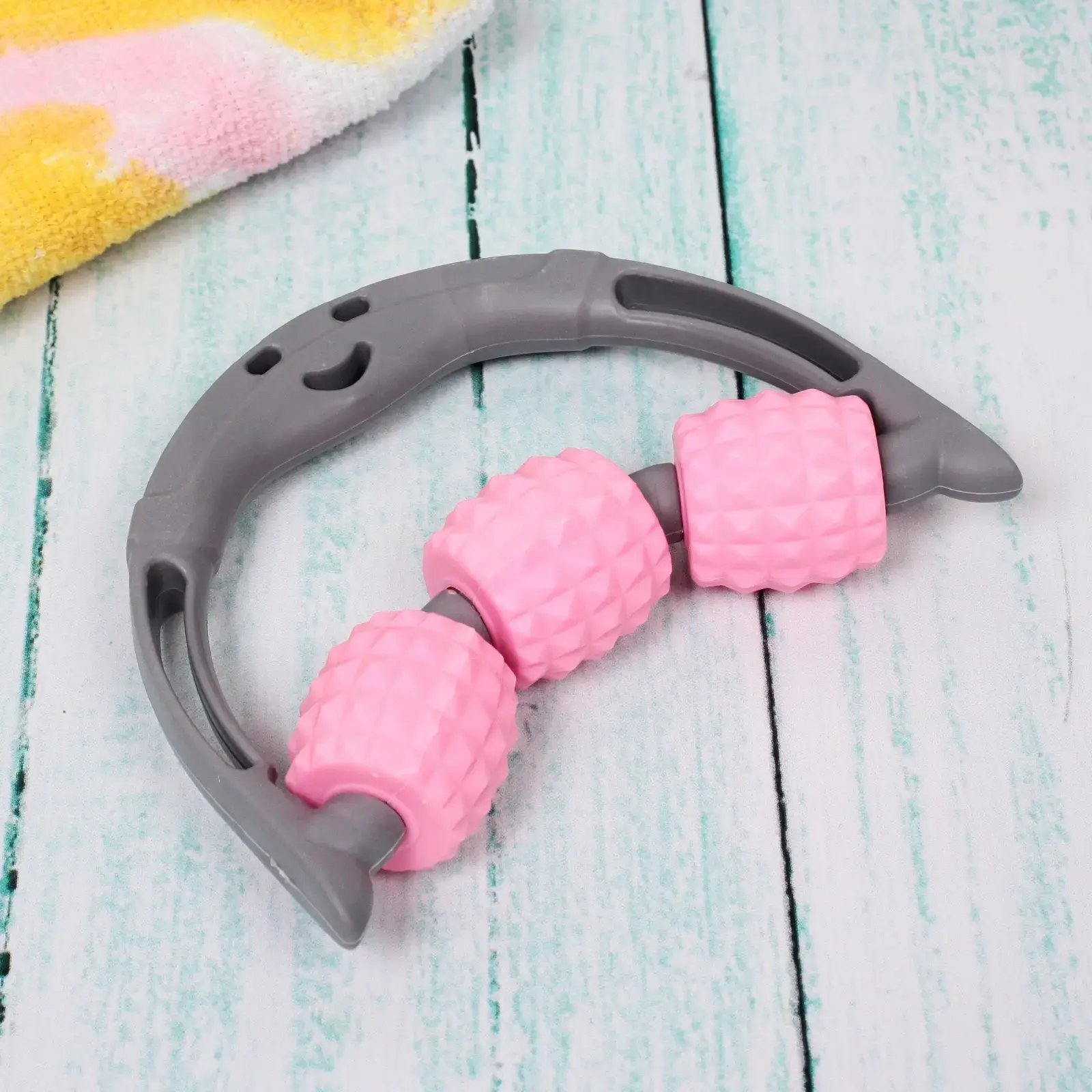 Массажер роликовый Sportage для тела, 3 ролика 15х13х3,5 см, розовый/серый, металл/пластик
