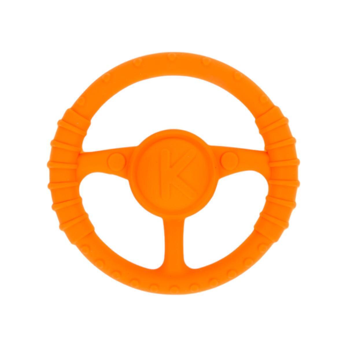 Силиконовый прорезыватель 'Руль' создан специально для комфортного массажа десен во время прорезывания зубов. Его эргономичная форма и яркий оранжевый цвет привлекают внимание ребенка, делая процесс облегчения дискомфорта приятным и увлекательным.