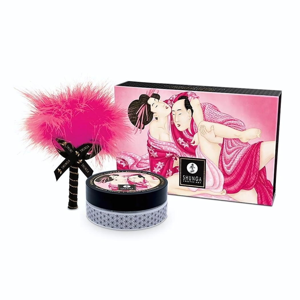 Массажная пудра Shunga 'Raspberry Feeling', аромат малины, 75 гр, с кисточкой, кукурузный крахмал