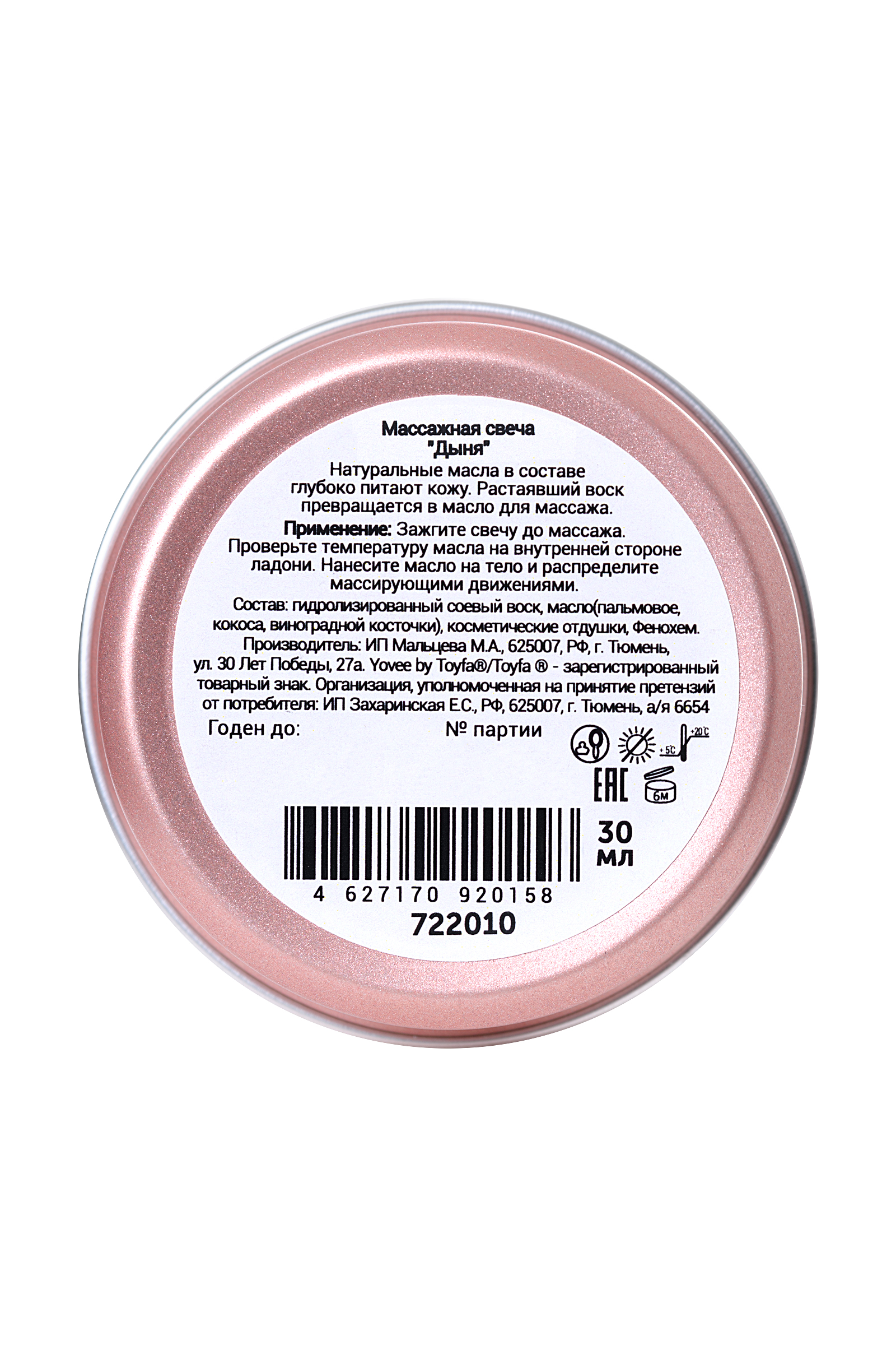 Массажная свеча с ароматом дыни, 30 мл, натуральные масла для романтического массажа