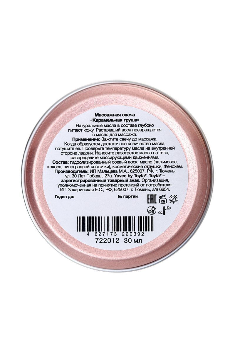 Массажная свеча «Массаж на десерт» с ароматом карамельной груши, 30 мл, для романтического вечера