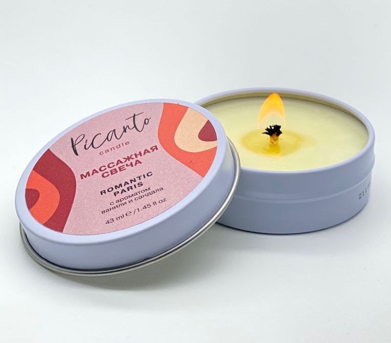 Массажная свеча «Romantic Paris», ваниль-сандал, соевый воск, безопасный разогрев до 40°C, 43 мл