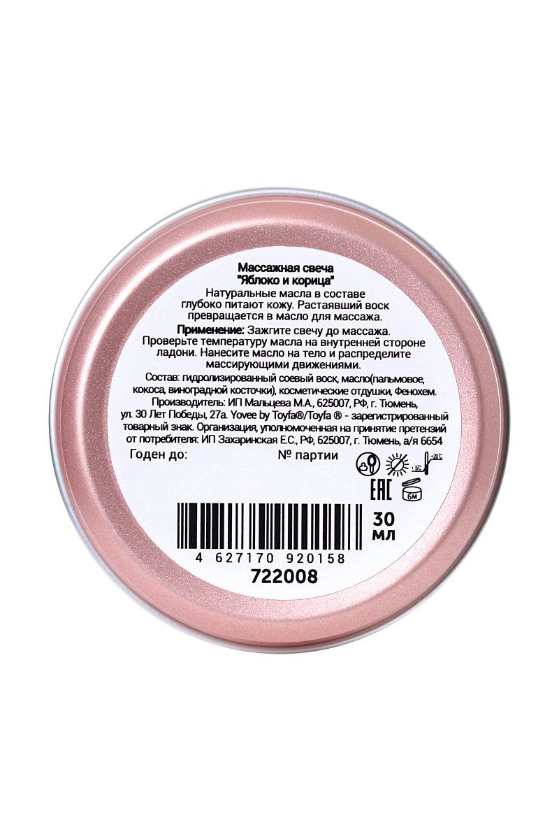 Массажная свеча 'Пряный массаж', 30мл, аромат яблока/корицы, для эротического массажа