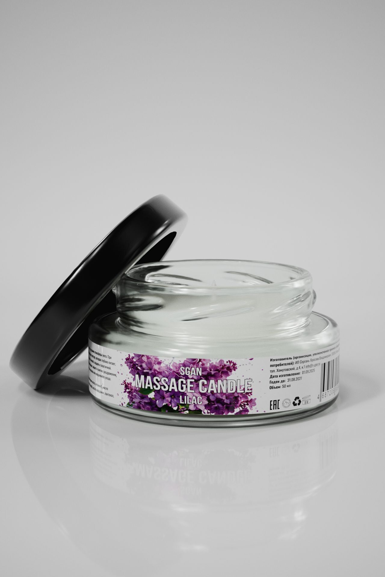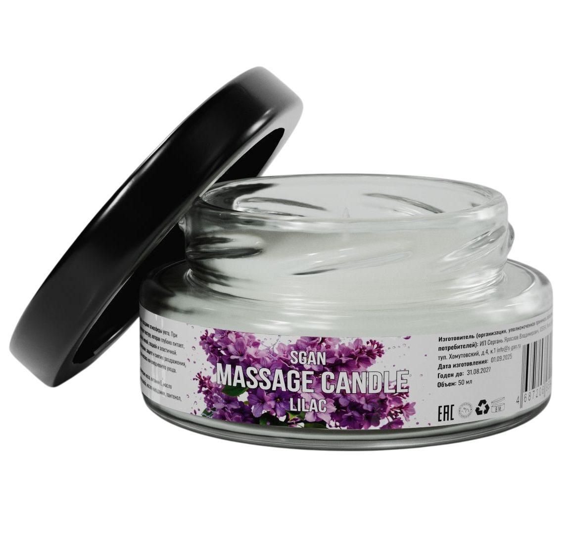 Рекомендуется использовать при температуре помещения от 20 до 25°C, хранить в недоступном для детей месте, избегать прямых солнечных лучей. Объем свечи составляет 50 мл, форма — стеклянная банка с плотной крышкой, что обеспечивает долгий срок службы и удобство использования. Произведена в России компанией SGAN, это качественный продукт для тех, кто ценит натуральный уход и расслабляющие процедуры.