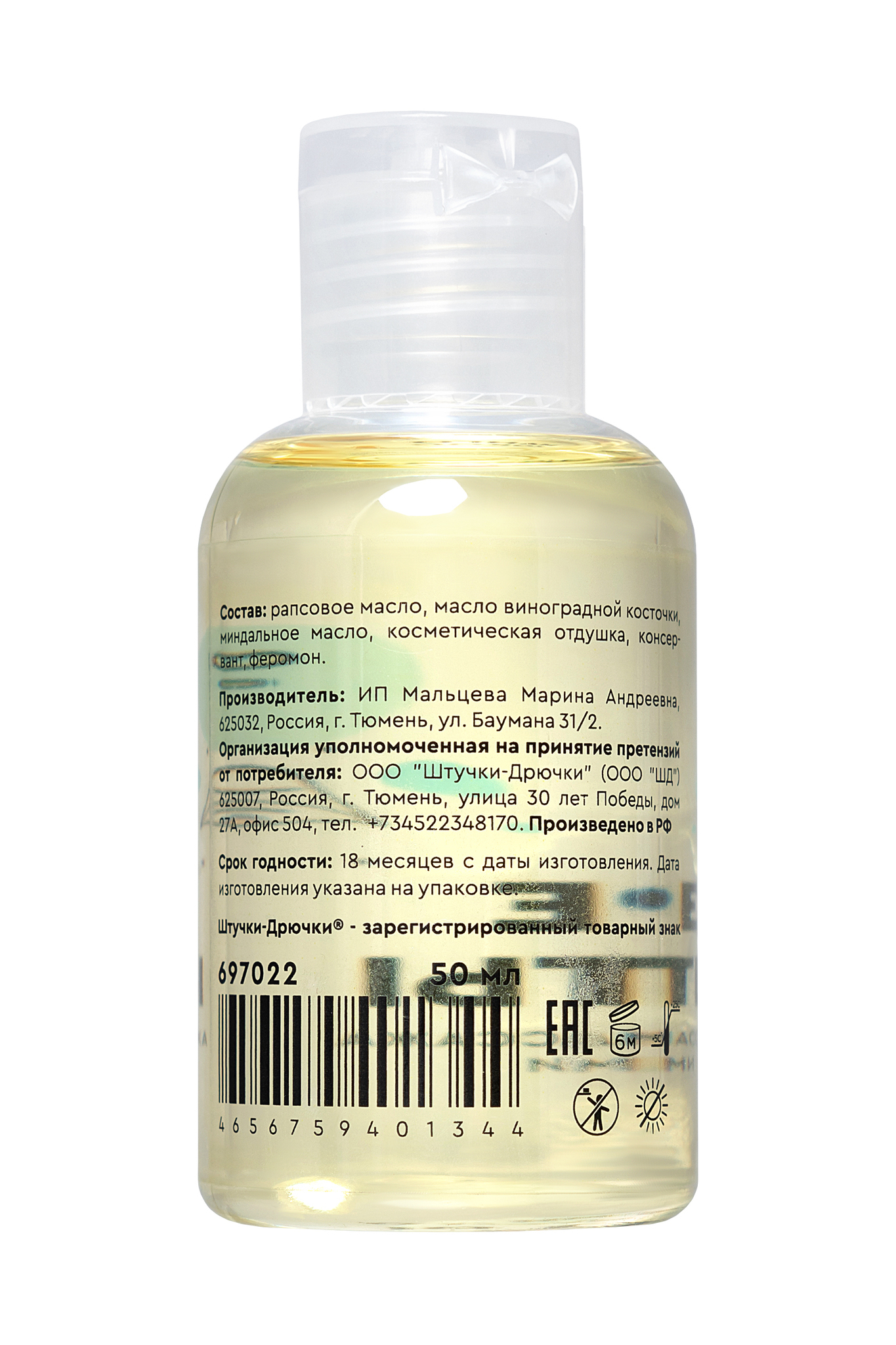 Масло для массажа 'Море цветы' 50мл, с феромонами, древесно-цветочный аромат