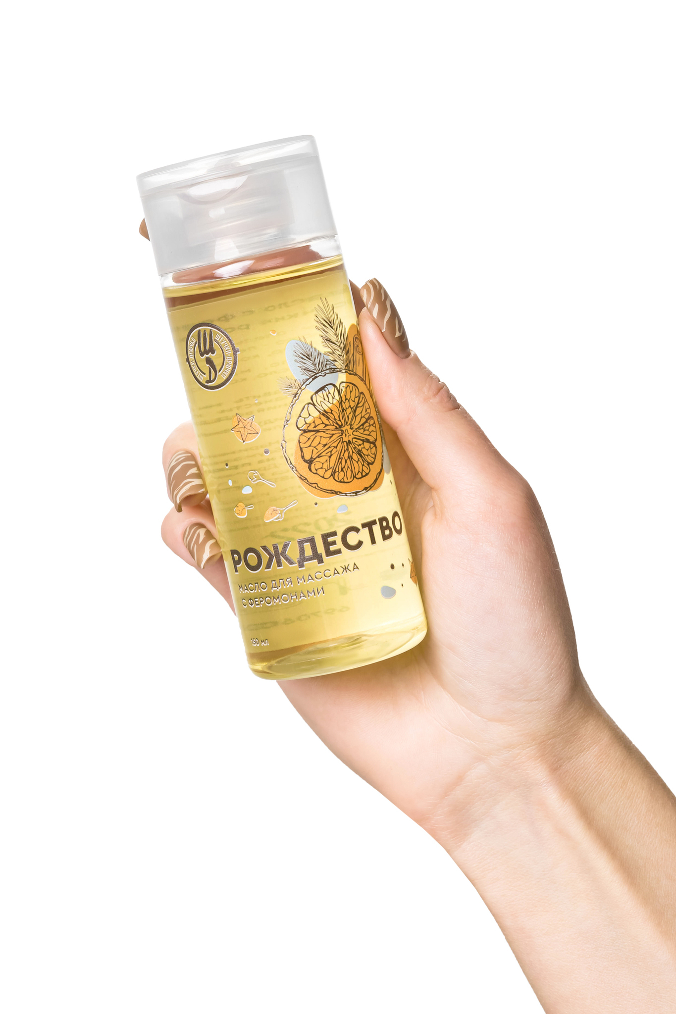Подарите себе и партнеру незабываемые моменты близости с массажным маслом, создающим атмосферу зимней сказки. Натуральная формула с феромонами пробуждает чувственность, а теплый аромат корицы и цитрусовых наполняет пространство магией праздника.