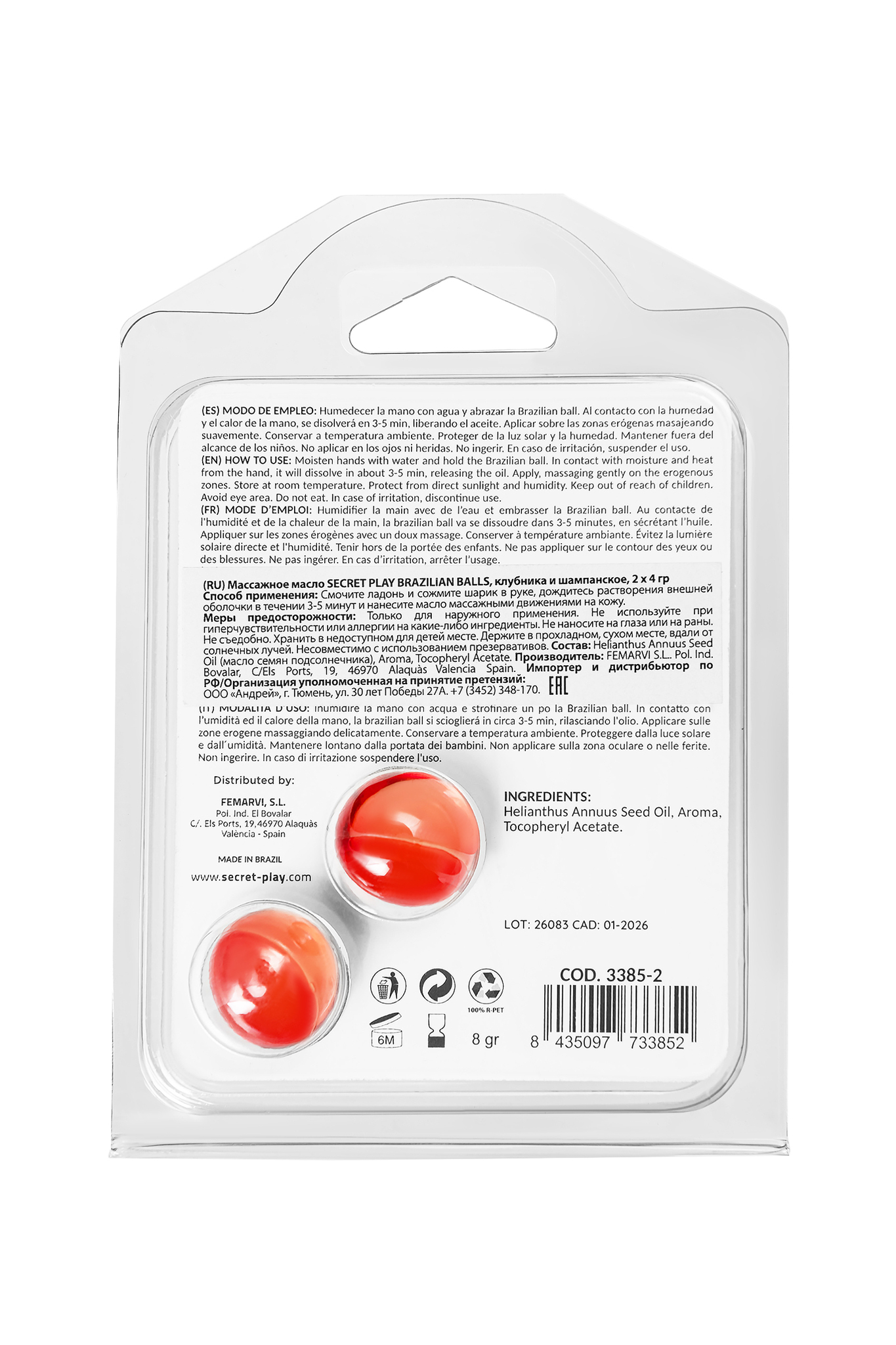 Массажное масло «Brazilian Balls» с ароматом клубники и шампанского, 2 шт, 8 г