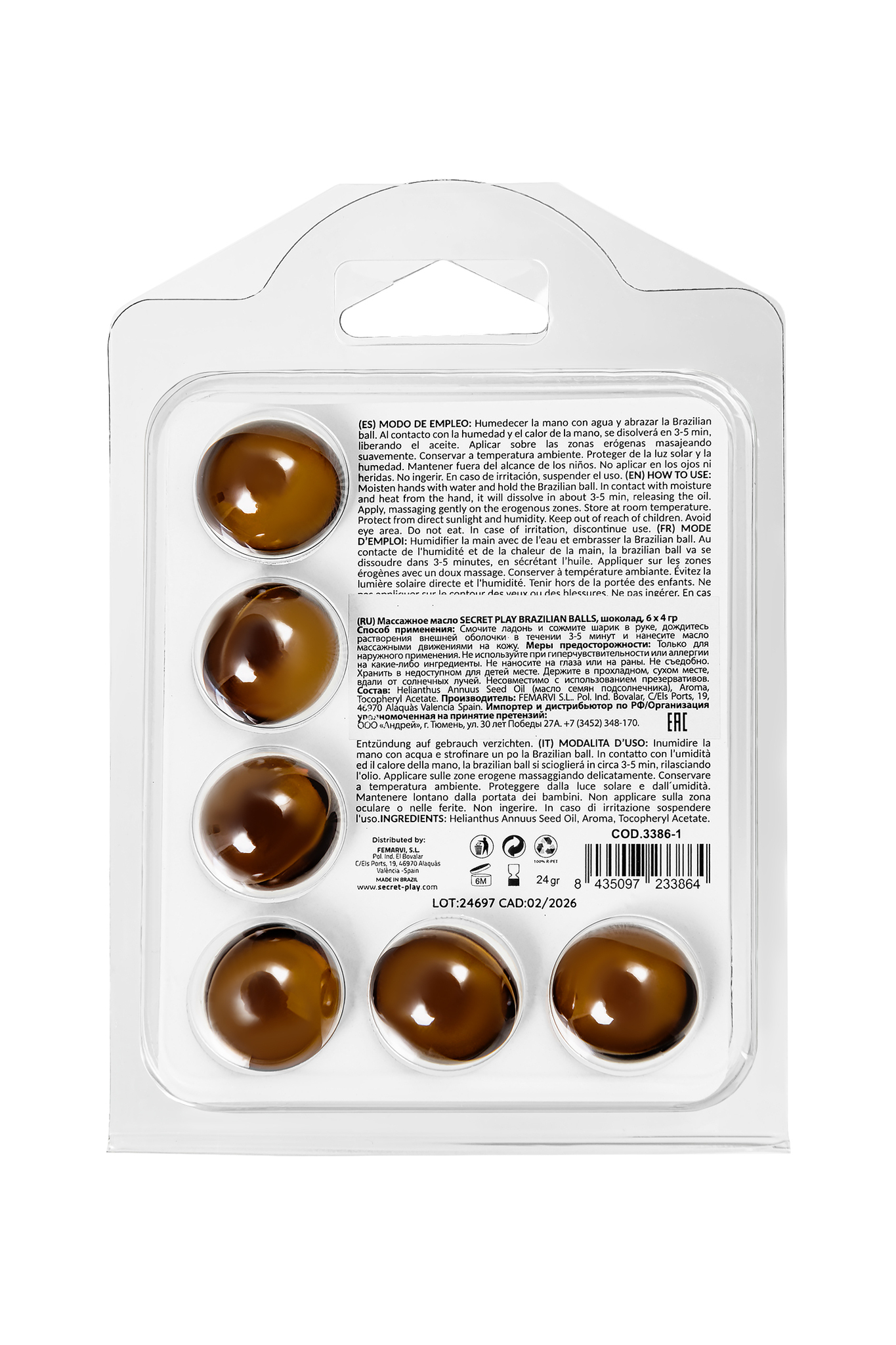 Массажное масло Secret Play Brazilian Balls шоколад, 6 шт по 4г, тает от тепла
