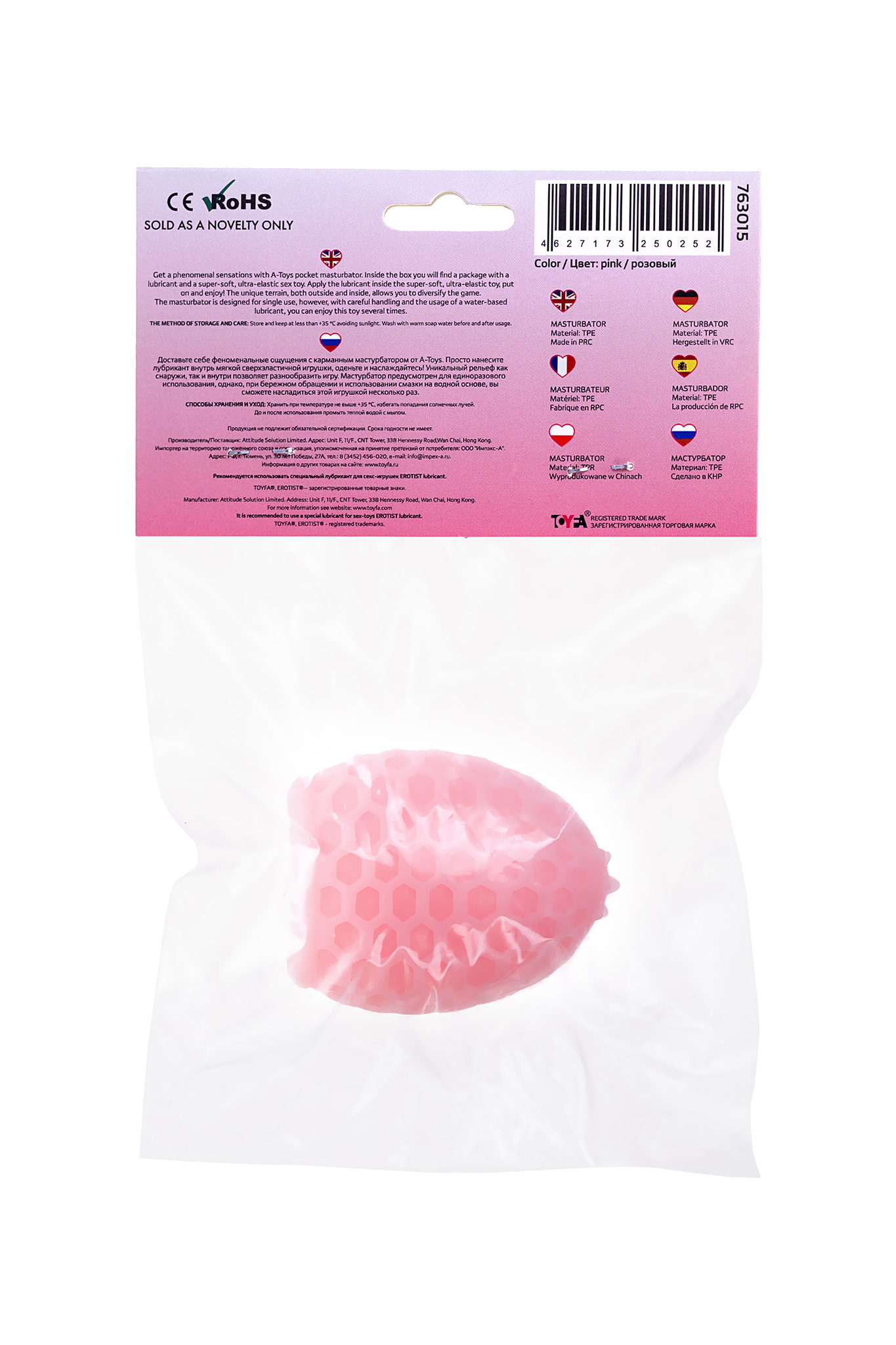 Мастурбатор A-Toys Pufl имеет общую длину 6 см и диаметр 2,7 см, что делает его идеальным для комфортного удержания в руке. Цвет мастурбатора — розовый, а его текстура с рельефом в виде ячеек обеспечивает дополнительную стимуляцию. Для лучшего ухода за изделием рекомендуется использовать очищающий спрей Clear Toy 100 мл.