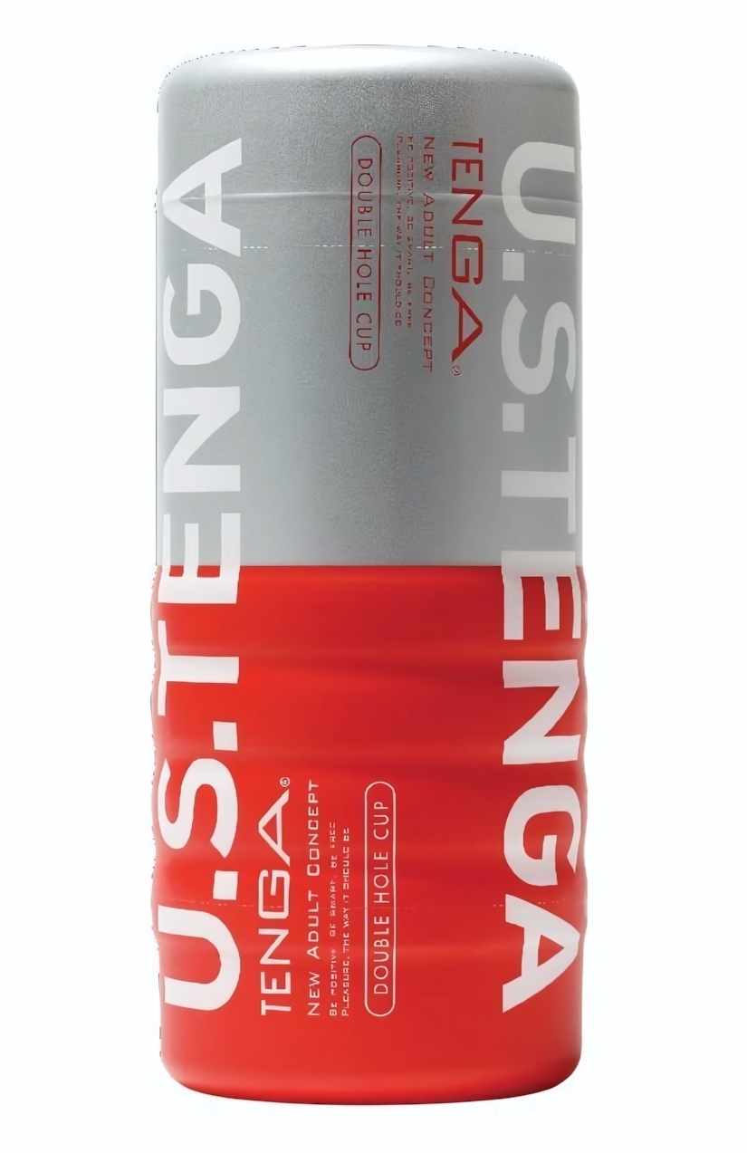 Мастурбатор Tenga «Double Hole CUP U.S.», TPE, красный, 18.1 см – две зоны стимуляции