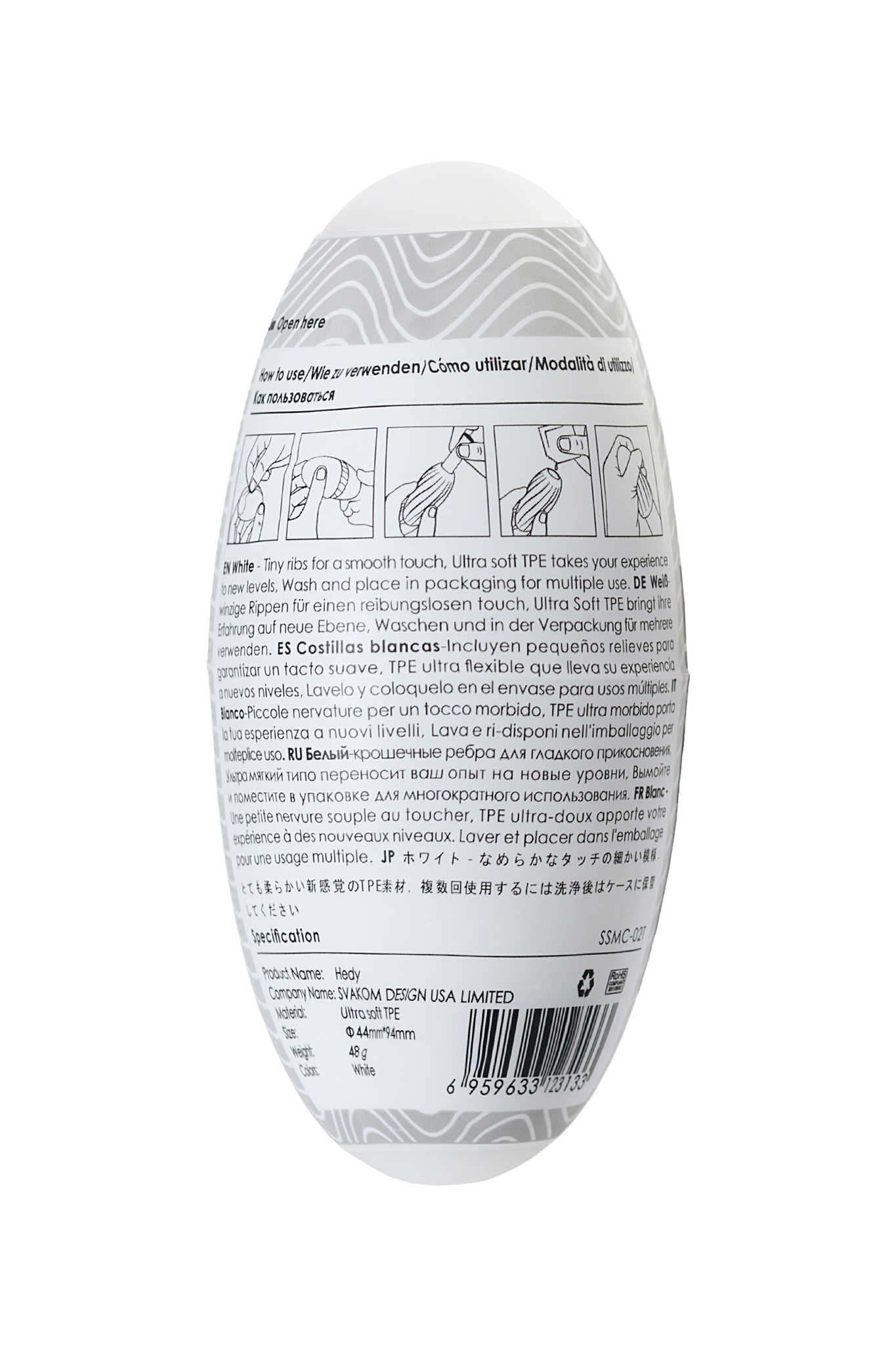 Мастурбатор выполнен в белом цвете и имеет гладкую поверхность с текстурированным узором. Его размеры делают его удобным для хранения и использования. После каждого применения обязательно очищайте игрушку и просушивайте, чтобы продлить срок службы. Присыпьте детской присыпкой для сохранения мягкости материала.