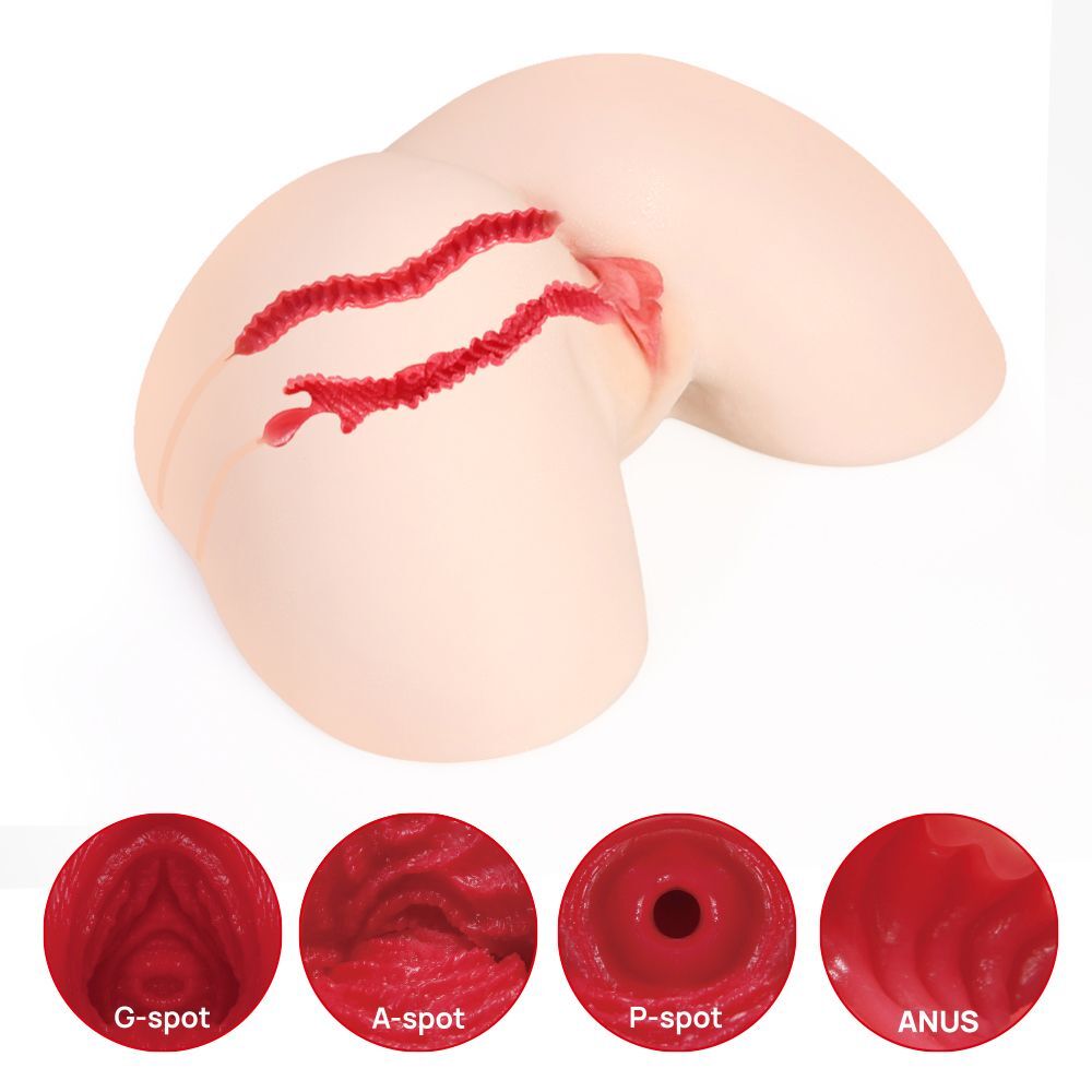 Предназначен для взрослых мужчин, ищущих новые ощущения в интимной сфере. Вставьте виброэлементы с шариками в специальные отверстия параллельно вагинальному и анальному каналам, включите вибрацию на батарейках AA (4 штуки — не входят в комплект) — и наслаждайтесь имитацией оргазмических спазмов. Узкое входное отверстие диаметром 1 см обеспечивает плотный обхват, тогда как реалистичная структура с точкой G и складками усилит стимуляцию. Анальное отверстие с бугорками и спиральными складками добавит интенсивности.