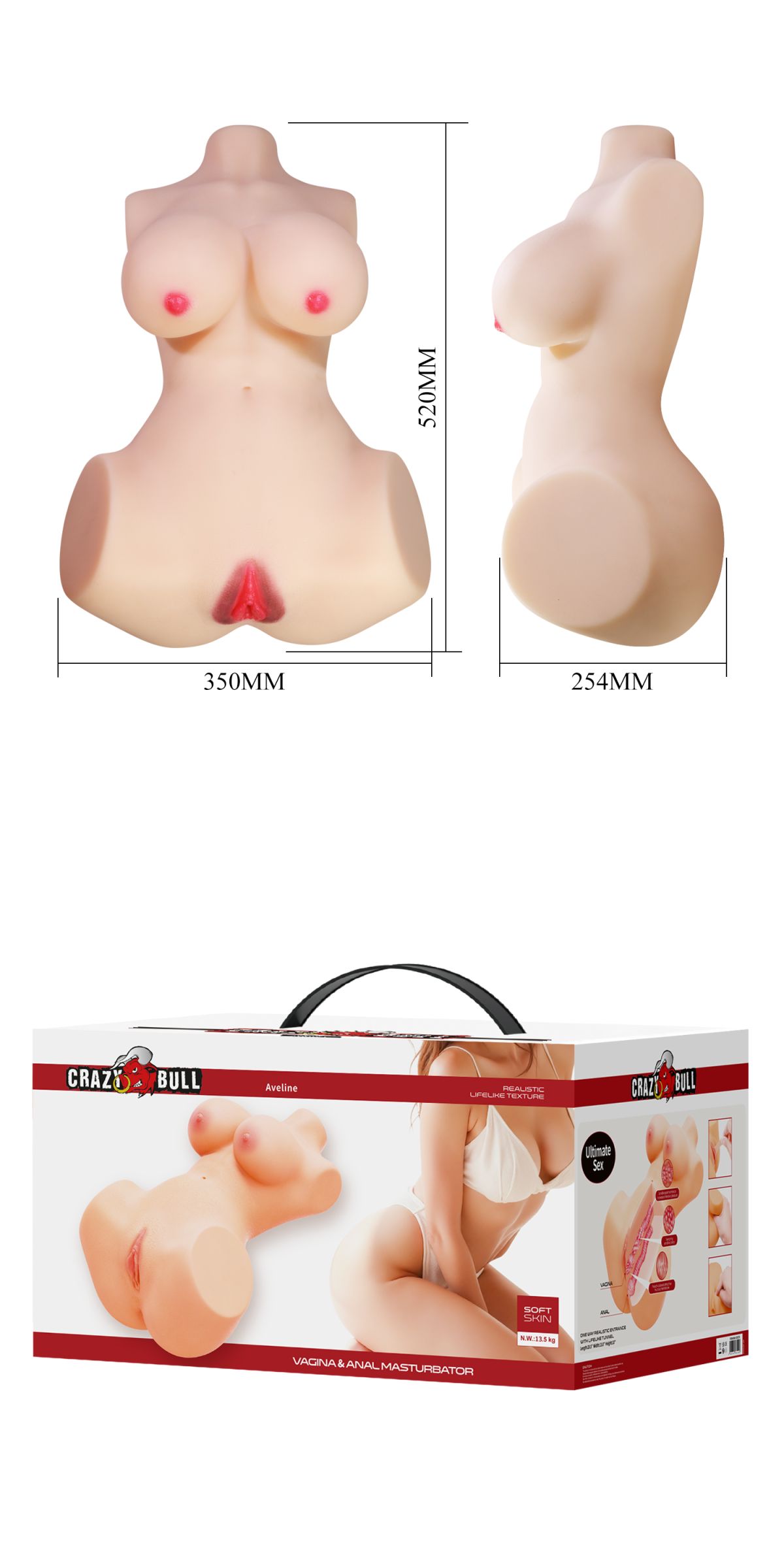 Мастурбатор-торс "Aveline" создан для тех, кто ценит глубокие, насыщенные ощущения и эффект полного присутствия. Реалистичная форма женского тела с выраженной грудью, талией и ягодицами усиливает визуальное возбуждение и помогает полностью погрузиться в процесс. Два отдельных канала позволяют разнообразить сценарии и выбирать тот тип стимуляции, который подходит именно вам.