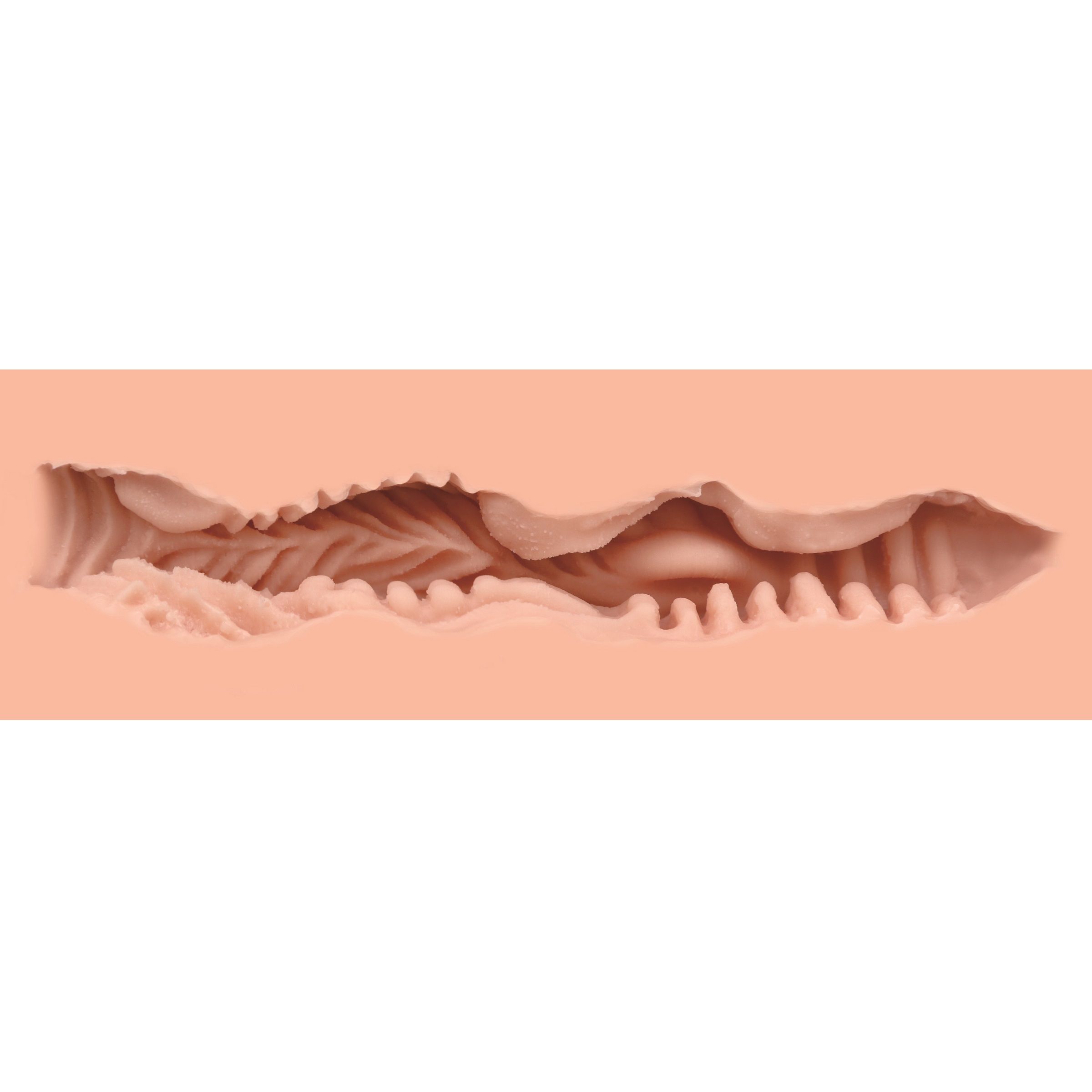Внутренний канал имеет рельеф из складок, рёбер и выступов, которые тянутся по всей длине. Такая структура обеспечивает равномерную стимуляцию и разнообразные ощущения на протяжении всего процесса. Рукав помещён в прозрачную чашу-стакан, что делает использование более удобным и аккуратным, а также упрощает хранение.