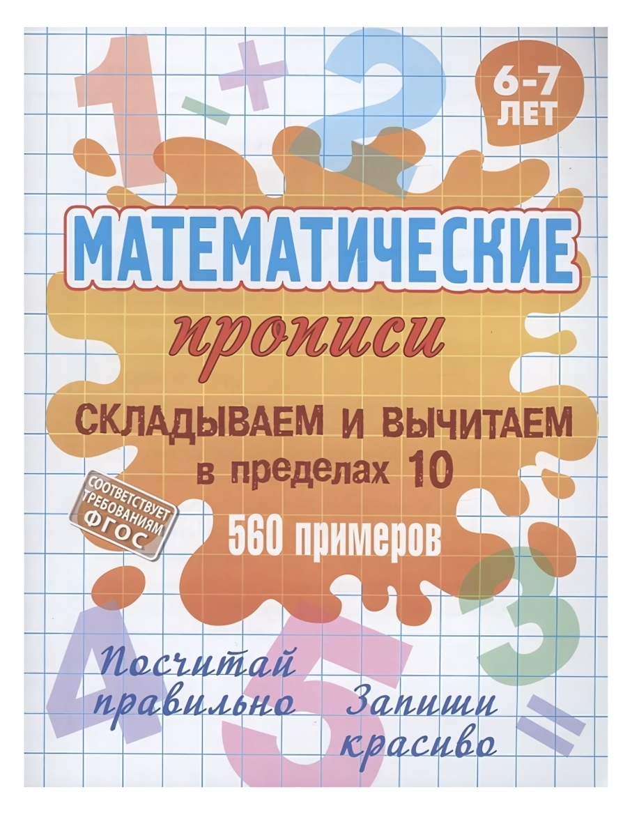 Математические прописи для дошкольников 6-7 лет, учимся складывать и вычитать до 10, 560 примеров, Букмастер