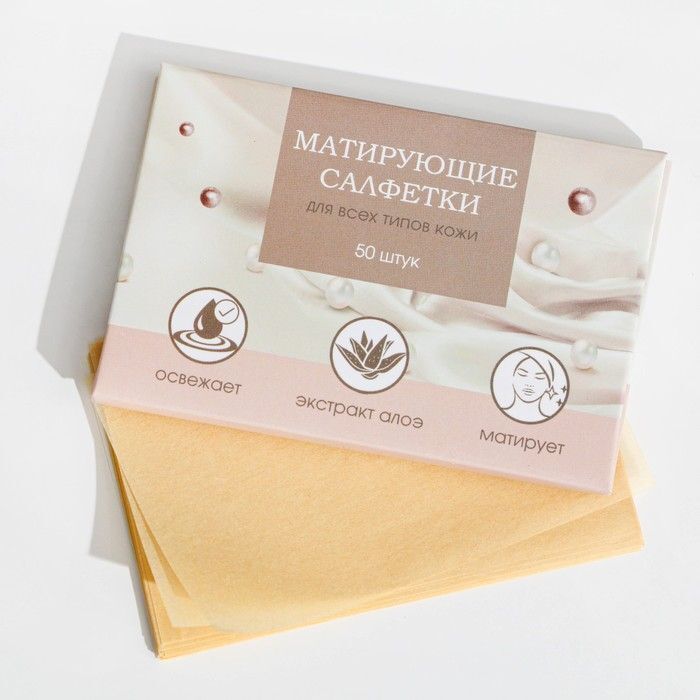 В упаковке содержится 50 салфеток, каждая из которых обладает тонкой текстурой, что позволяет легко и быстро использовать их в повседневной жизни. Упаковка выполнена в стильном дизайне с элементами, подчеркивающими натуральность продукта. Салфетки имеют нежный желтоватый оттенок и обеспечивают мгновенный эффект матирования.