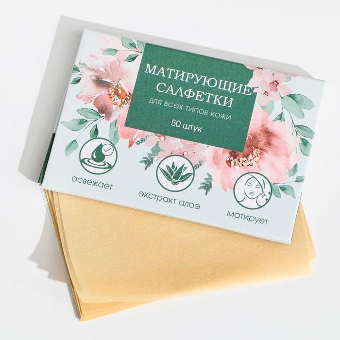 Салфетки имеют прямоугольную форму и упакованы в стильный дизайн с цветочными мотивами, что делает их не только функциональными, но и эстетически приятными. Они легко помещаются в сумку и всегда под рукой, когда вам нужно быстро освежить лицо. Не упустите возможность сделать вашу кожу матовой и ухоженной за считанные секунды!